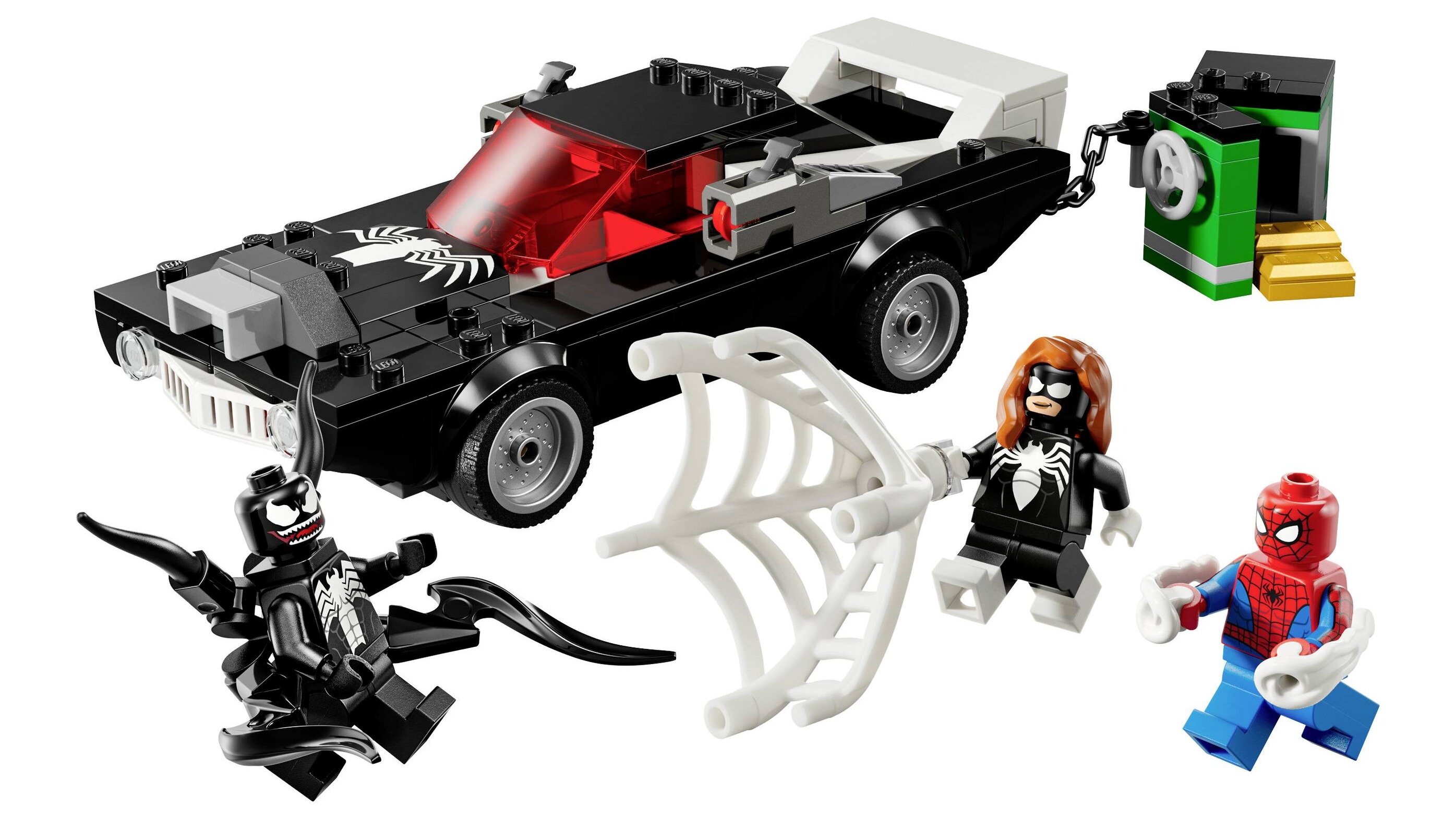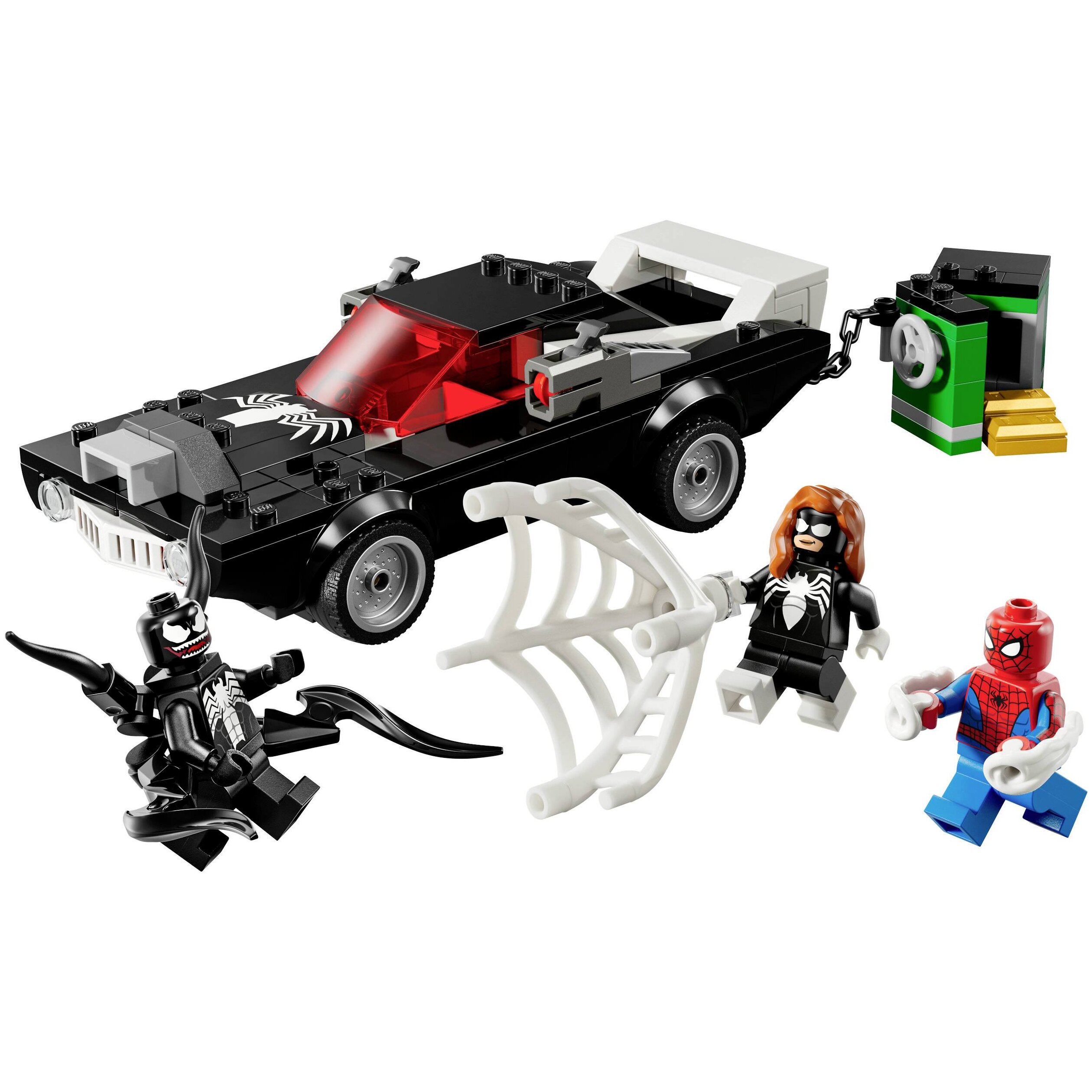A megépíthető Venom játék autóhoz 3 minifigura tartozik: Pókember hálóvetővel, Venom 4 csáppal és Póknő (Julia Carpenter) egy rugalmas hálóval, amely elég nagy ahhoz, hogy elfogjon egy gonosztevőt. A venomizált autónak mindkét oldalán van egy-egy kilövő, hozzá lehet férni a motorjához, a vezetőfülkéje pedig kinyitható. Venom beülhet az autóba, ha leveszed a 2 alsó csápját, amelyekkel még tovább venomizálhatod az autót. Az aranyrudakat tartalmazó széf ihletet ad a hős és a gonosztevő közti akciók eljátszásához. A széfet elvontathatja az autó, amelyben egy tárolót is találsz az aranyrudak számára. Az extra digitális élmény érdekében az építők felnagyíthatják és elforgathatják a modellek 3D-s változatát, és követhetik a haladásukat a szórakoztató és intuitív LEGO Builder appban.