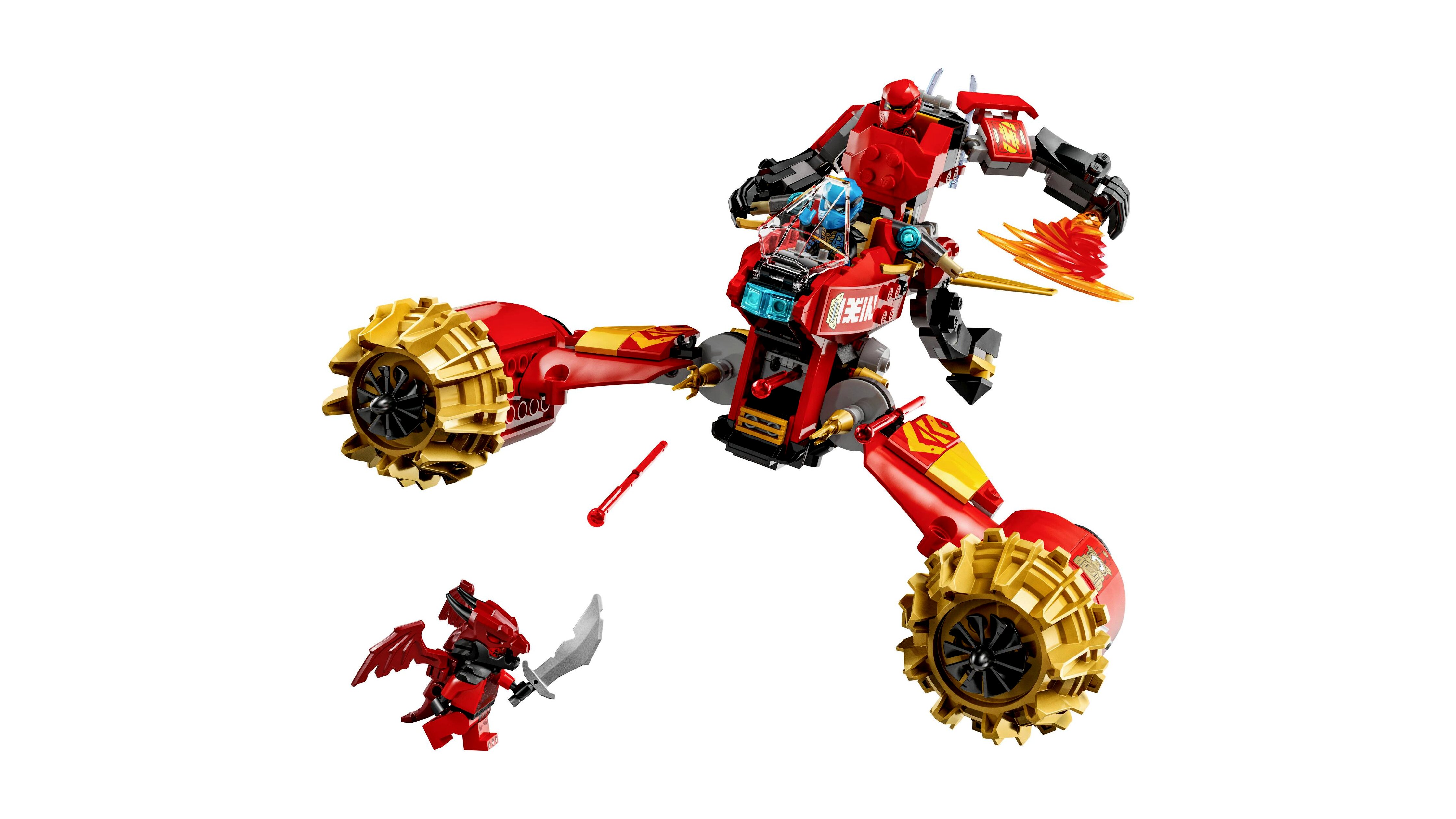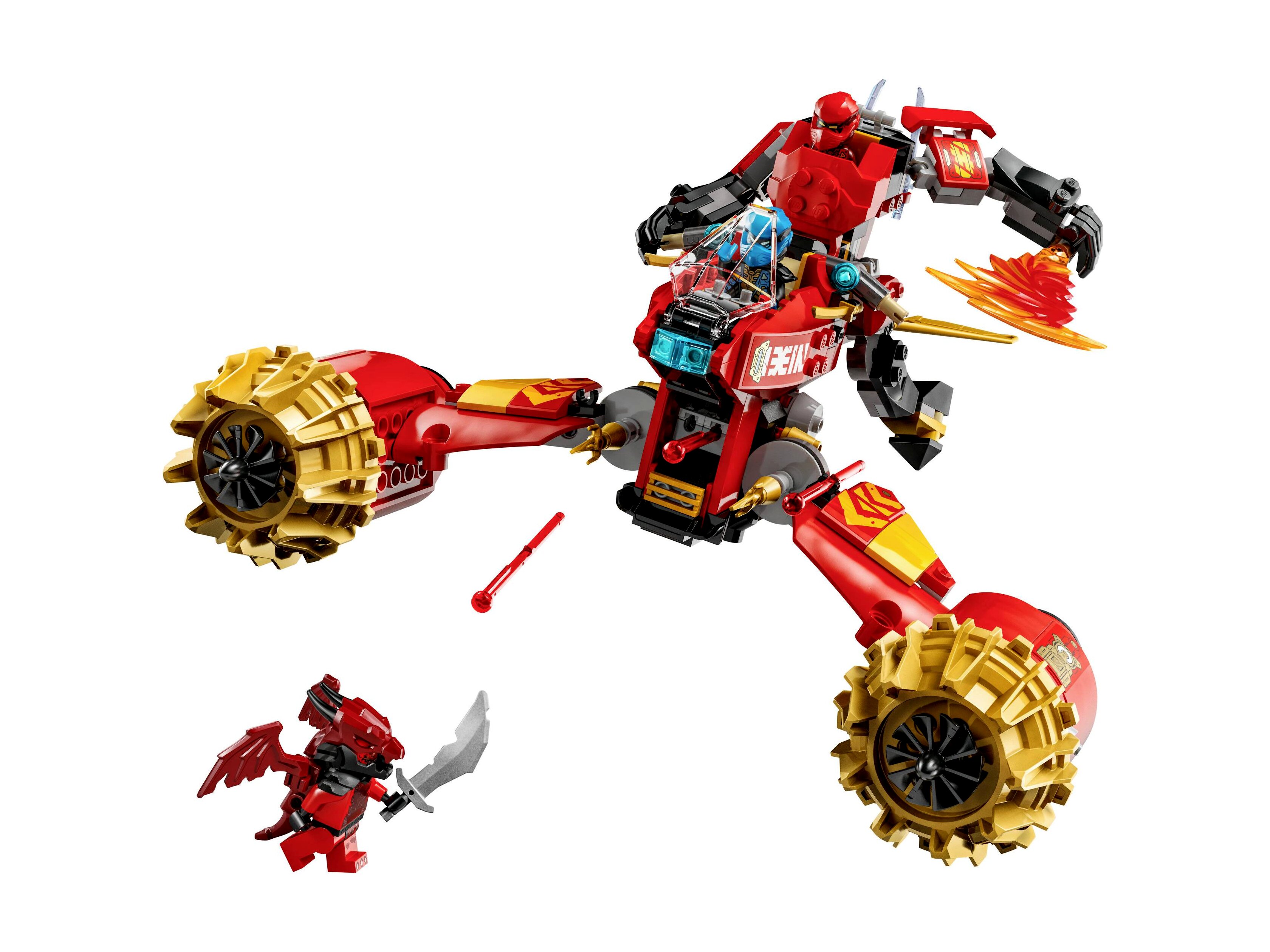 - Kombó nindzsajármű – Ezt a hatalmas NINJAGO® járművet 2 kisebb járműre bonthatod: Kai robotjára és Nya repülő motorkerékpárjára, hogy a gyerekek még több vidám játékidőt tölthessenek a nindzsákkal