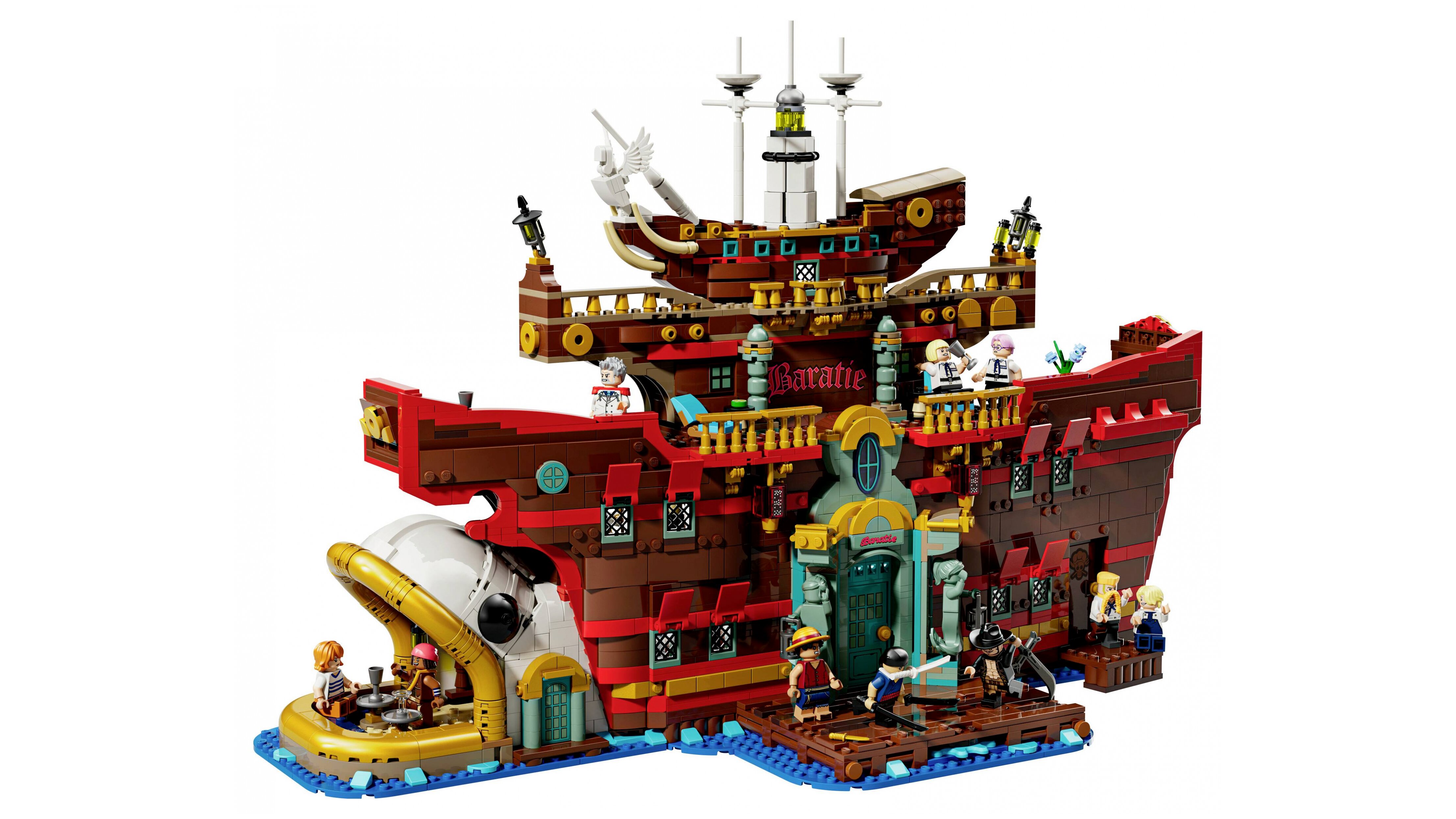 Ennek a lenyűgöző, hajóformájú kiállítási darabnak számos belső helyiségéhez férhetsz hozzá, például a konyhához, az étkezőhöz, Zeff szálláshelyéhez és a kincses szobához. A klasszikus jeleneteket 10 LEGO minifigura kelti életre: Luffy, Zoro, Nami, Usopp, Szandzsi, Zeff, Garp, Helmeppo, Koby és Mihawk. A szett sorozathű részleteket és 5 „Wanted” (körözött) feliratú posztert is tartalmaz. A LEGO Builder alkalmazásban a felhasználók felnagyíthatják, és 3D-ben elforgathatják a modelleket, és építés közben követhetik a haladásukat.