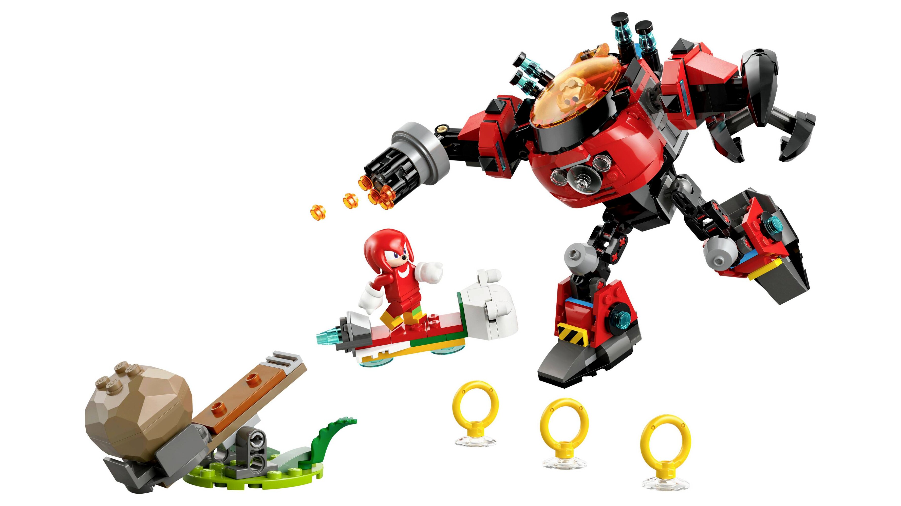 - Kalandok egy LEGO® robottal – Ehhez a harcias játékhoz tartozik egy talajon álló katapult is, ami köveket lő ki egy kar lenyomására, hogy Sonic rajongói rengeteg akciót játszhassanak Knuckles és Dr. Eggman társaságában