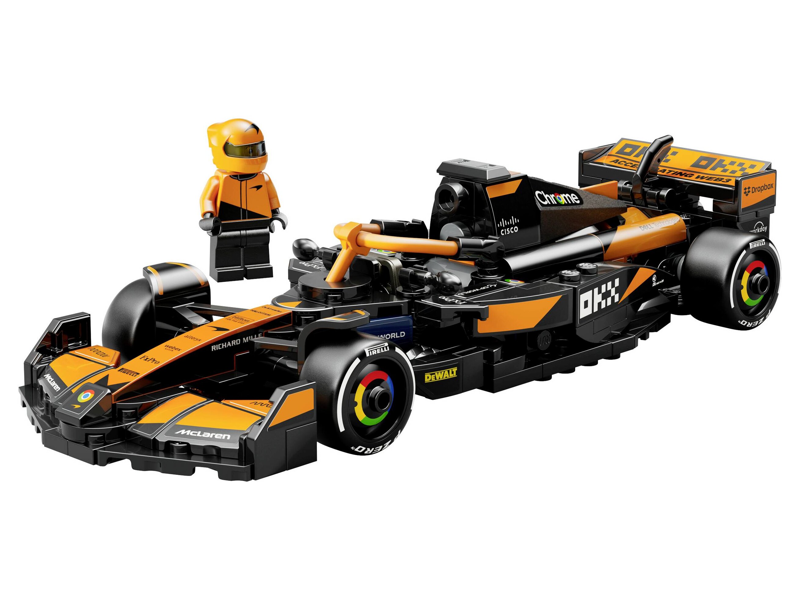 A F1 autómodell nyitható fülkével (a „glória” bukókeret felemelésével), hátsó szárnnyal, kereszt-lengőka ros felfüggesztéssel, szponzormatricákkal és „Pirelli” feliratú, szélesebb hátsó gumiabroncsokkal van ellátva. A játék autóhoz egy pilóta minifigura is tartozik, aki McLaren öltözéket és szárnyas sisakot visel, és akit a fülkébe ültethetsz az izgalmas versenyek során.