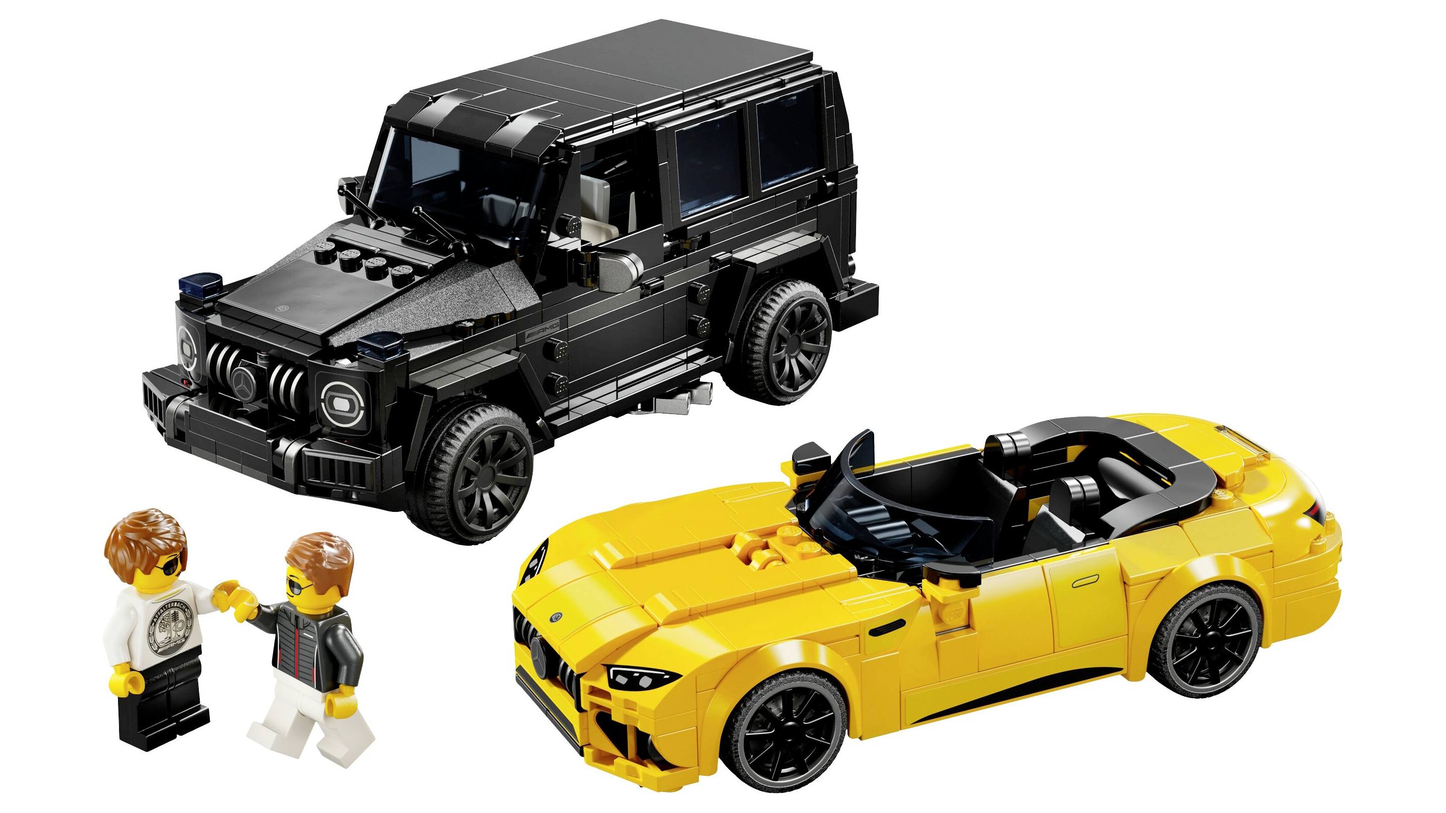 A Mercedes-AMG G 6 fekete G-osztály és a Mercedes-AMG SL 63 átalakítható, sárga sportautó modelljei visszatükrözik az eredeti járművek valósághű részleteit, ilyen például az elülső hűtőrács, a motorháztető és a belső tér. Mindkét Mercedes-AMG játékhoz tartozik egy pilóta minifigura is, akit a gyerekek a volán mögé ültethetnek, hogy élvezhessék a versenyzést a pályán.