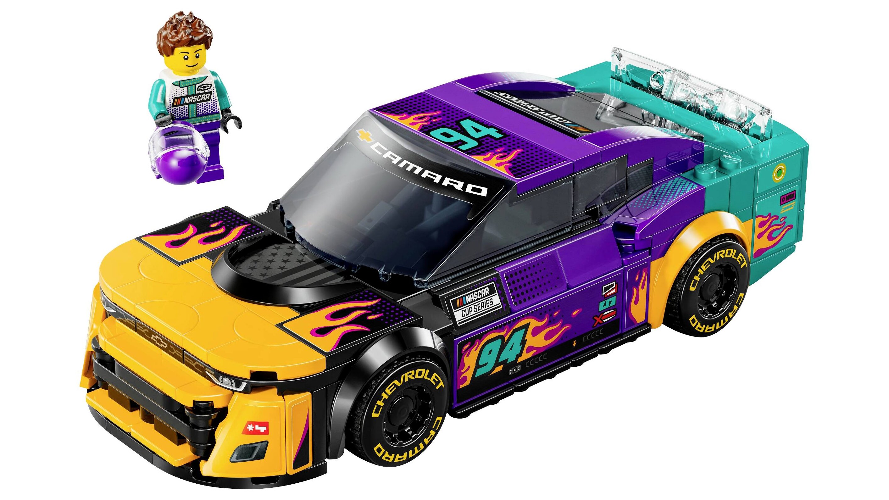 A 9+ éves fiúk, lányok és NASCAR® rajongók megszerezhetik, megépíthetik, játszhatnak vele és kiállíthatják a LEGO® Speed Champions NASCAR® Next Gen Chevrolet Camaro ZL1 (76935), gyerekeknek készült játék autót. Az erőteljes versenyautót élénk színek és lángok díszítik, megjelenítve a NASCAR Cup Seriesben versenyző igazi autót.