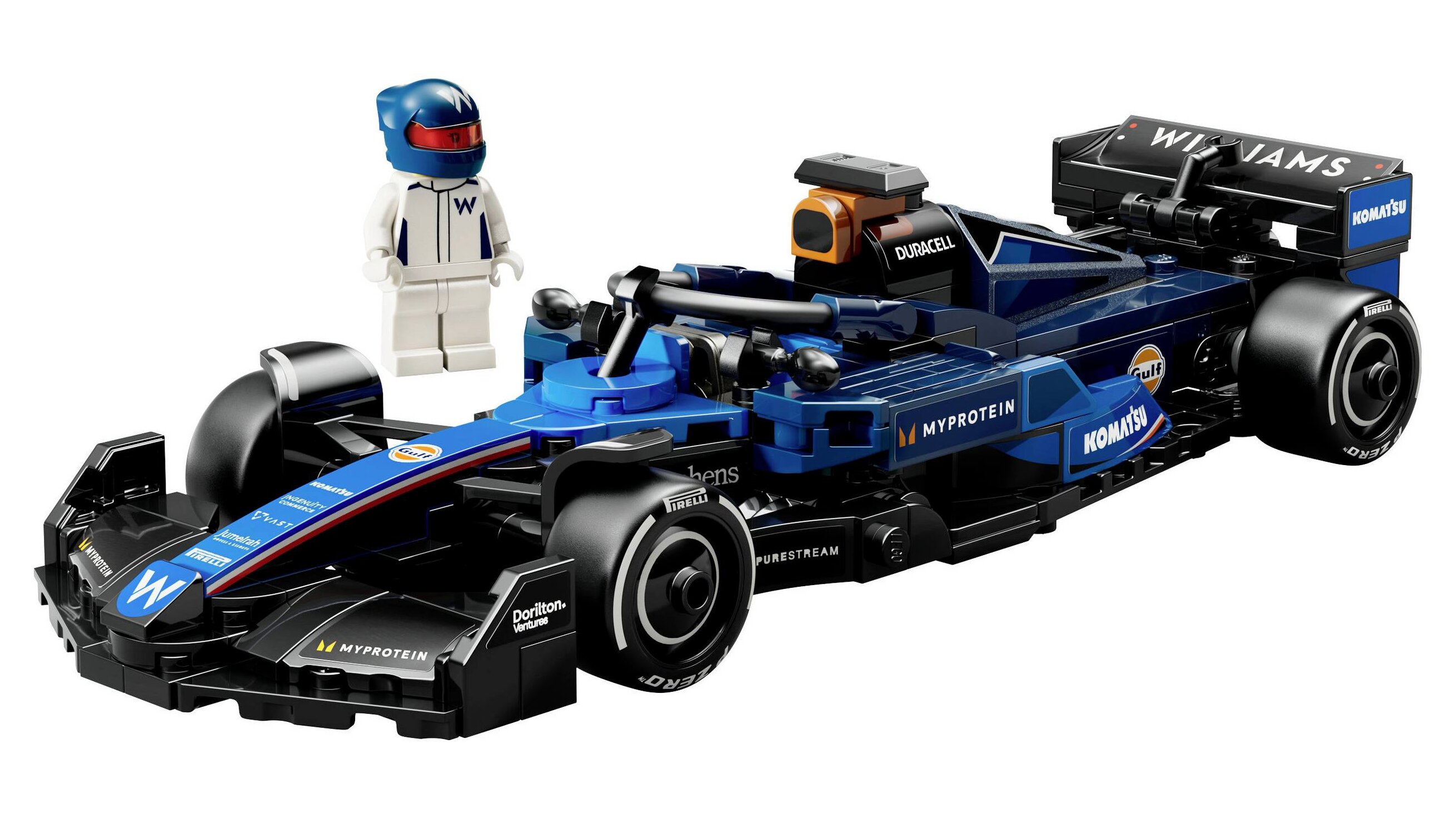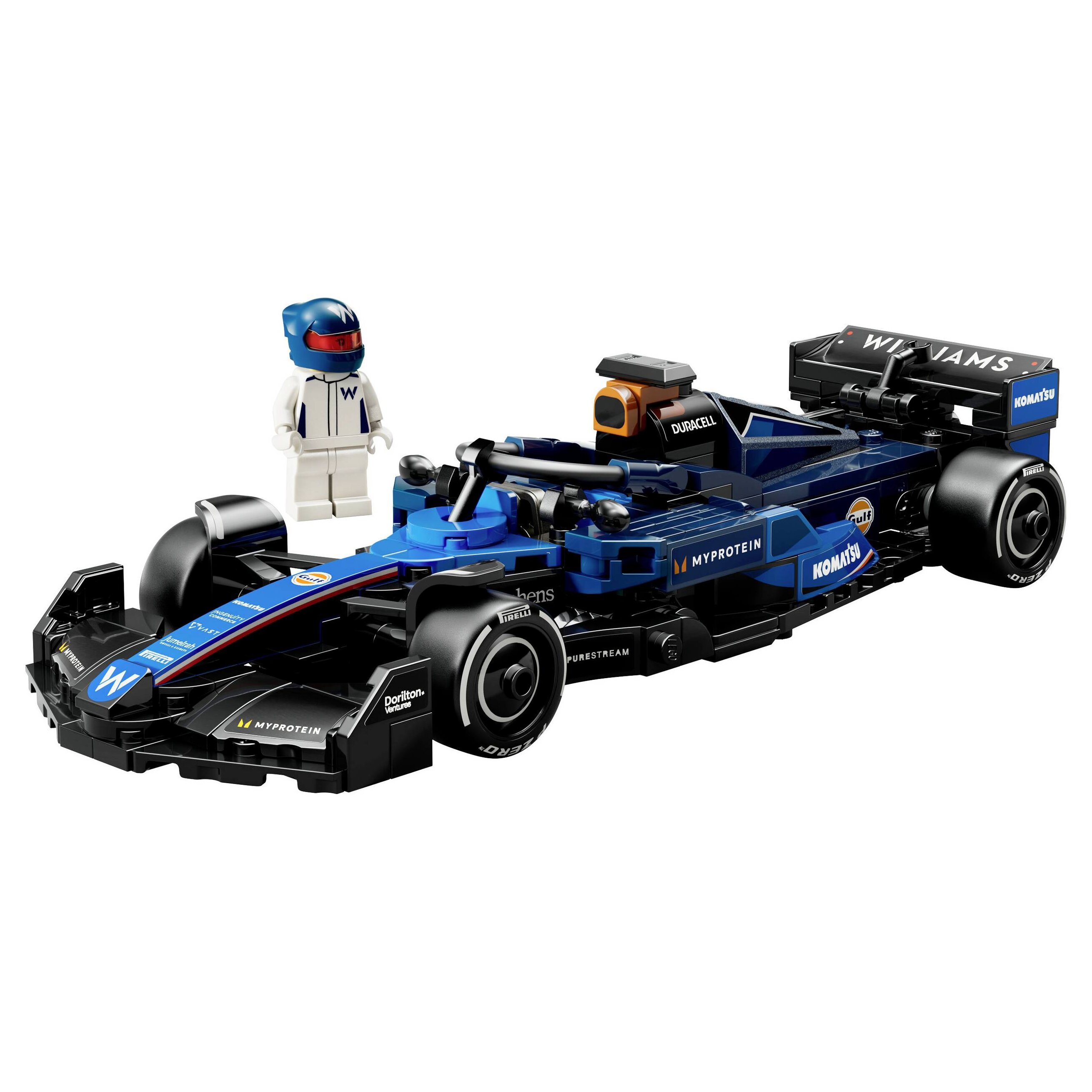 - 1 minifigura – Ez a járműves készlet tartalmaz egy pilóta minifigurát, aki Williams Racing öltözéket és szárnyas sisakot visel, és akit a gyerekek a fülkébe helyezhetnek az izgalmas versenyek során