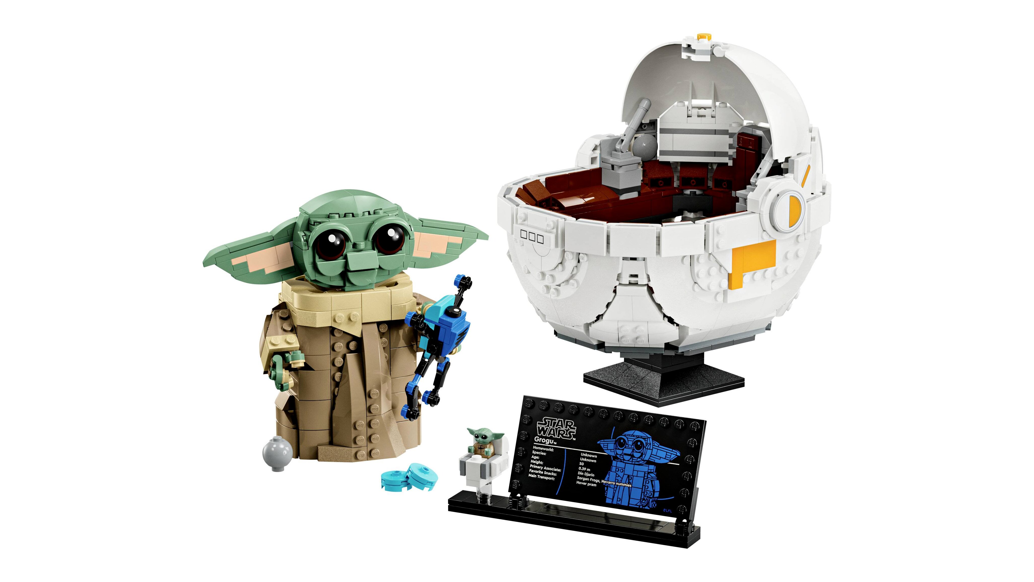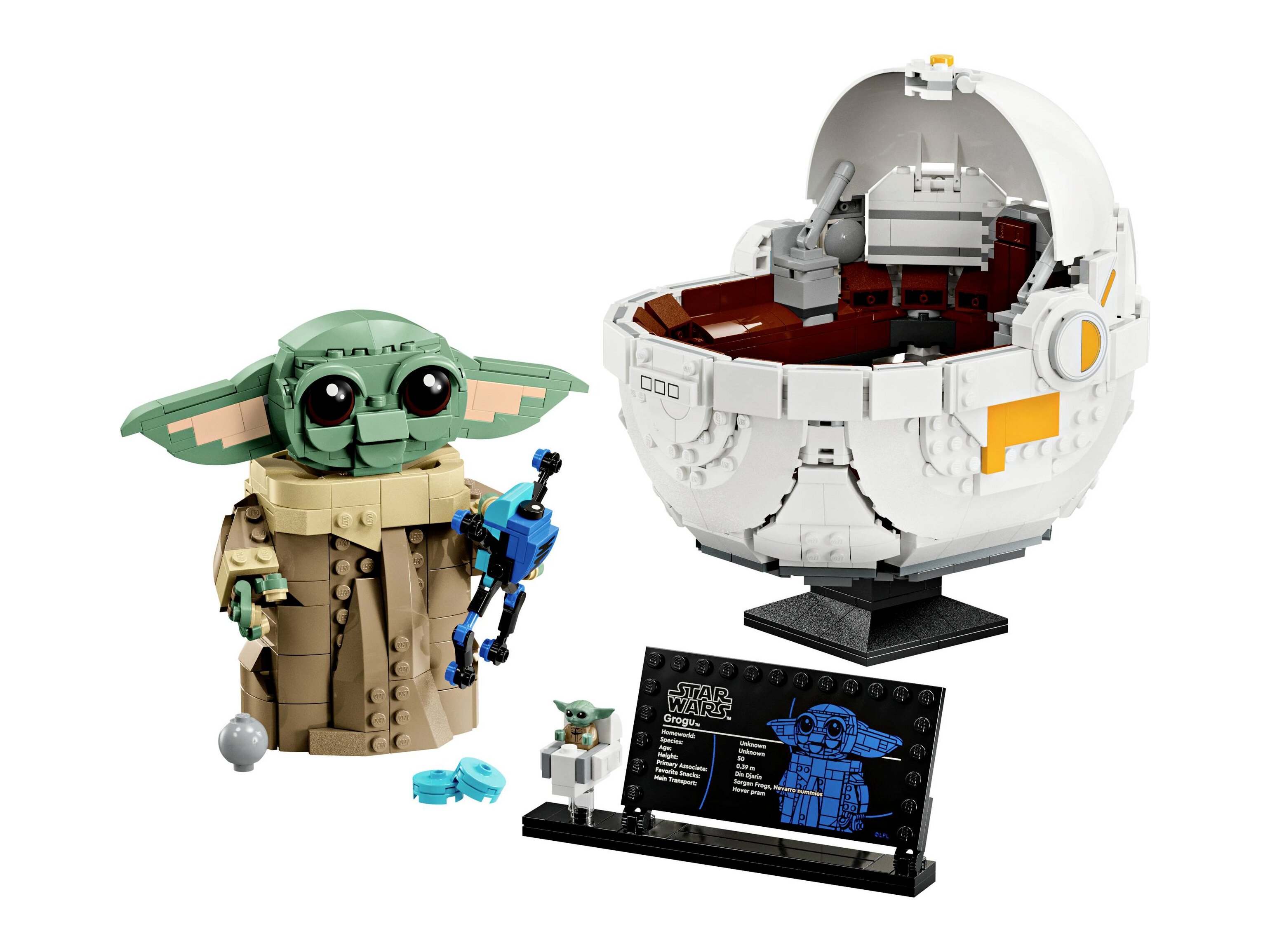 - Grogu LEGO® figura – A megépíthető, fő játékmodellhez egy állványon álló Grogu-adattábla is tartozik, amelyen helyet kap a standard méretű, megépíthető kis bölcsőben ülő Grogu LEGO figura