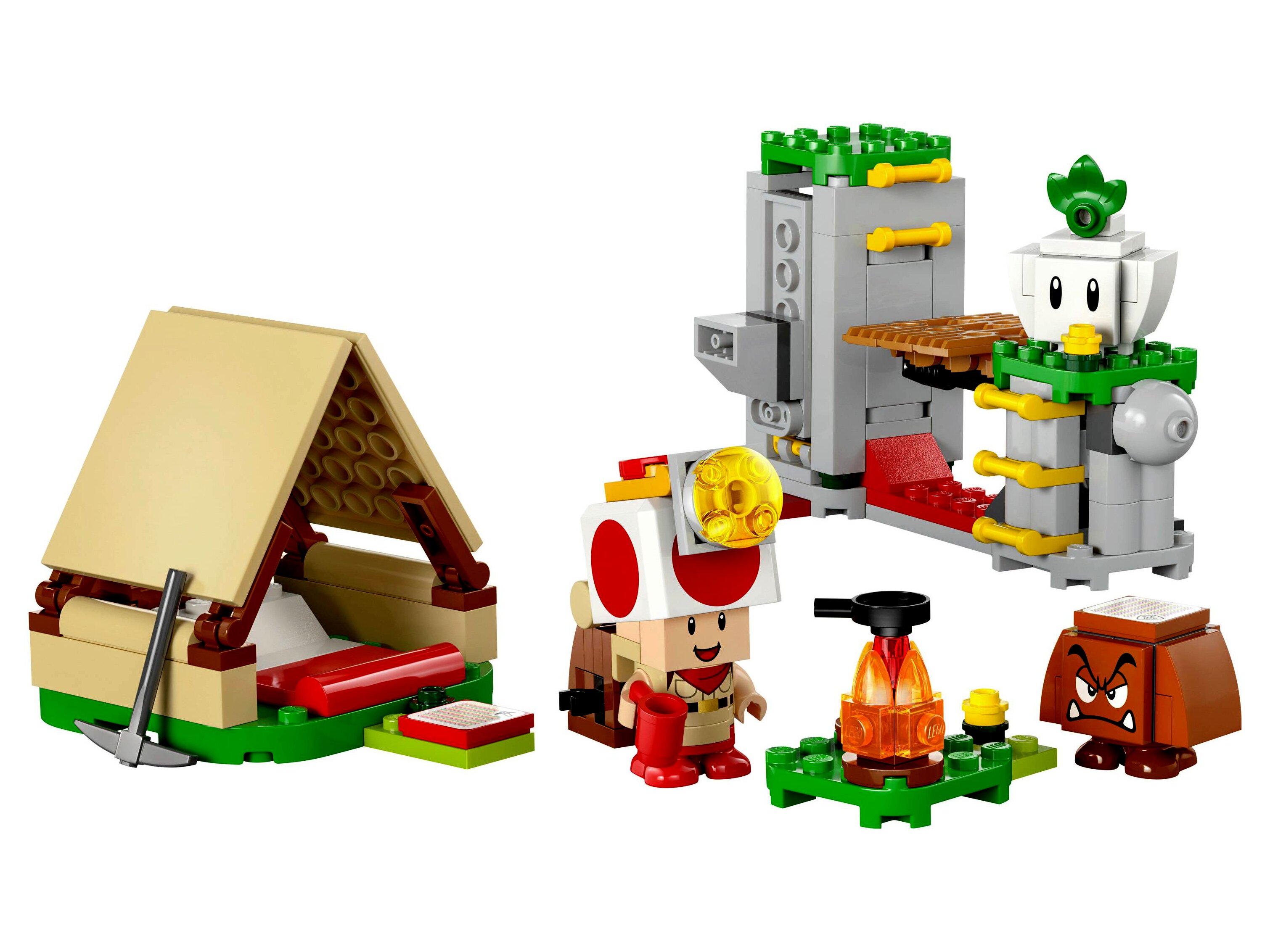 - Egy vidám LEGO® Super Mario™ játékkészlet gyerekeknek – Használj építőelemeket a sátor és a tábortűz összerakásához, keress kincseket, döntsd le a hidat, győzd le az ellenséget, és csinálj még sok mást Captain Toad táborhelyén!