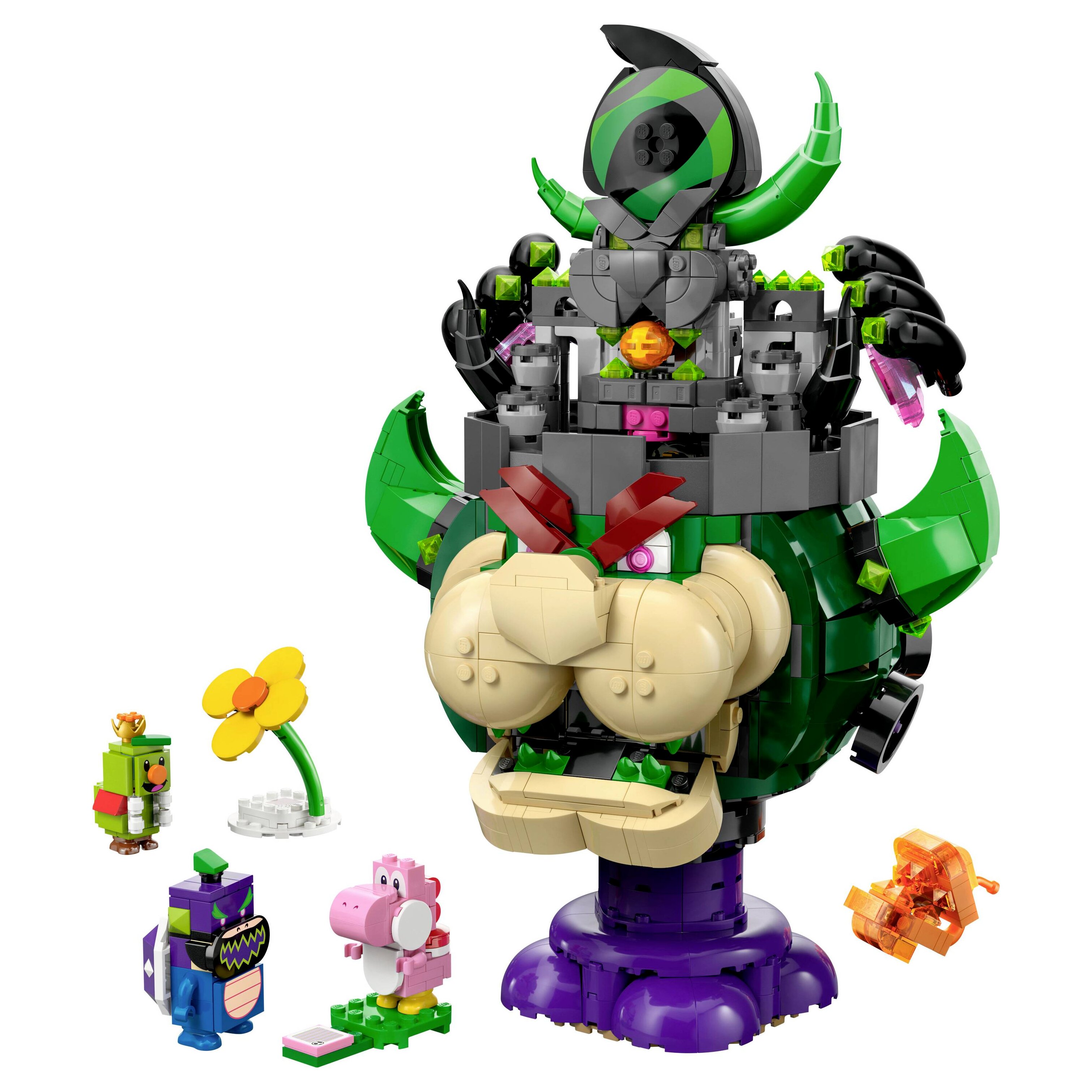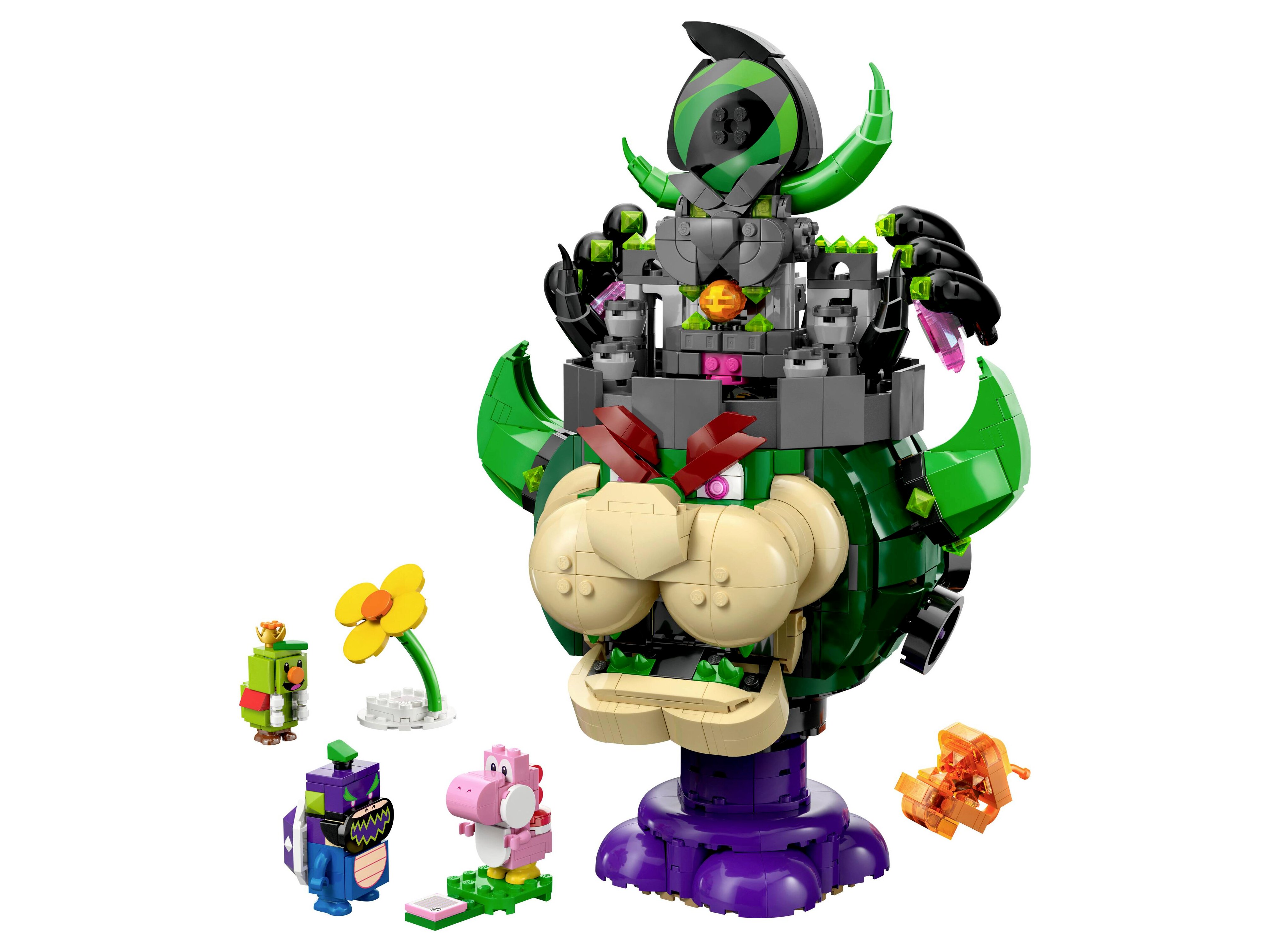 - 5 Nintendo® karakter az izgalmas történetekhez – Ez a megépíthető és kiállítható szett tartalmaz egy nagy, megépíthető Castle Bowser játékfigurát, valamint Rózsaszín Yoshi, Fiery Note Piranha, Prince Florian és Wonder Bowser Jr. figurákat