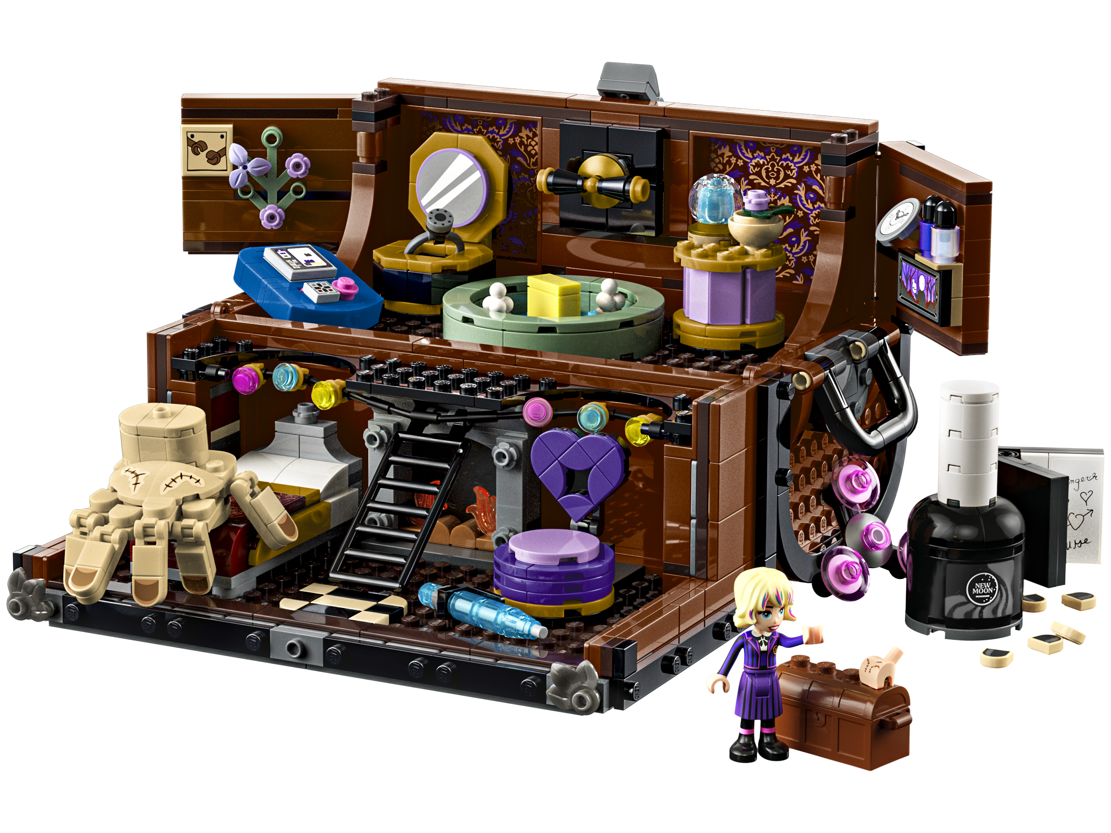 - Megépíthető ládikó Izével és Eniddel – Az Izé lakhelye szett egy remek születésnapi vagy halloweeni ajándék a Wednesday filmsorozat 10+ éves rajongói számára, akik 2 figurát és egy kinyitható ládikót állíthatnak ki, miután játszottak velük