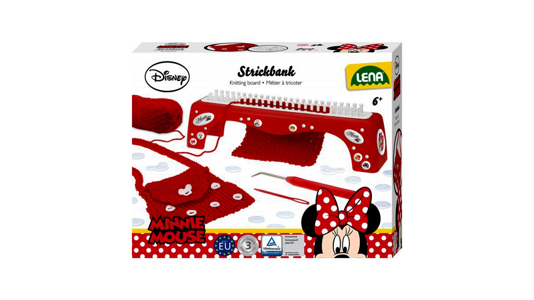 A szett tartalma: kötőpad, kötőtű, tompa hegyű tű, 1 db pamut gombolyag, filcgombok, Minnie egeres matricák. Ha elakadtok, egy tájékoztató füzet segít, hogy megtanuld elkészíteni a kis táskát, részletes képekkel, ábrákkal. Fejleszti a gyermekek finommotorikus készségét és kézügyességét.
