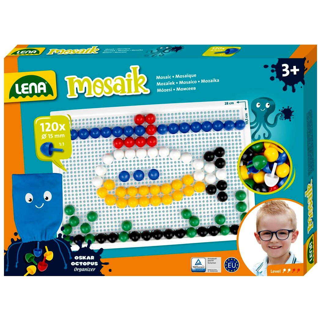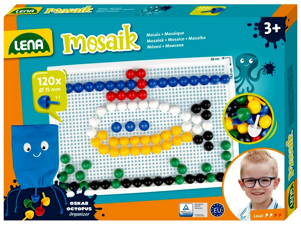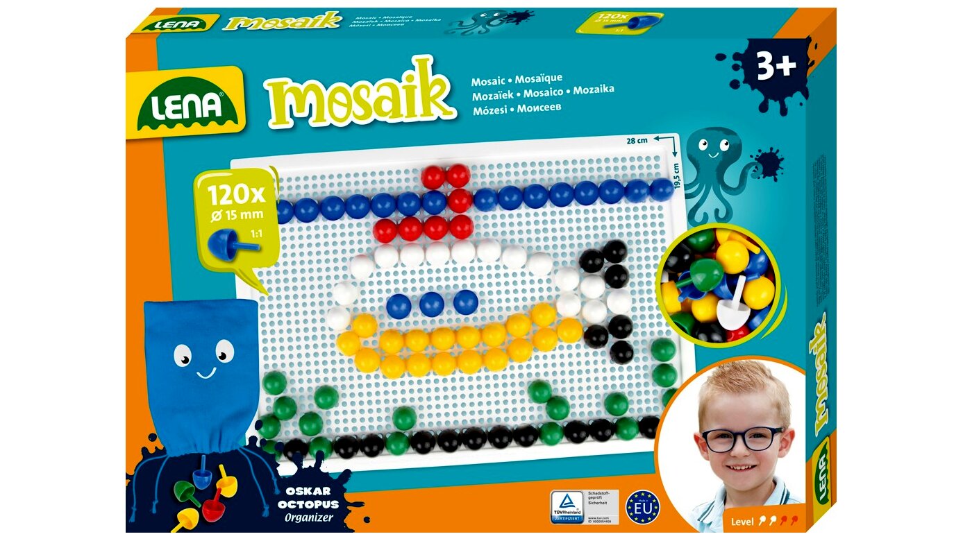 Lena pötyi mozaik képkészítő készlet. A készletben 120 darab, 15 mm átmérőjű, különböző színű kis pötyi található, melyekkel a gyerekek bármilyen általuk tervezett képet kirakhatnak. Remekül fejleszti a kézügyességet és a kreativitást.