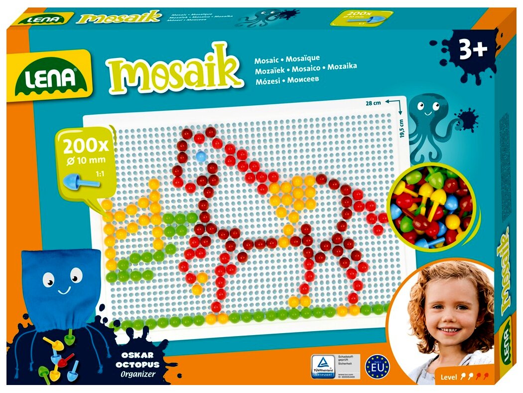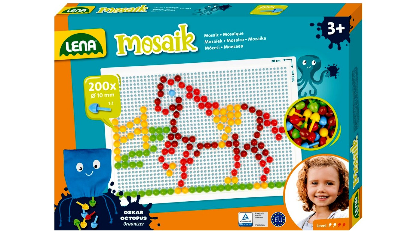 Lena pötyi mozaik képkészítő készlet. A készletben 200 darab, 10 mm átmérőjű, különböző színű kis pötyi található, melyekkel a gyerekek bármilyen általuk tervezett képet kirakhatnak. Remekül fejleszti a kézügyességet és a kreativitást.