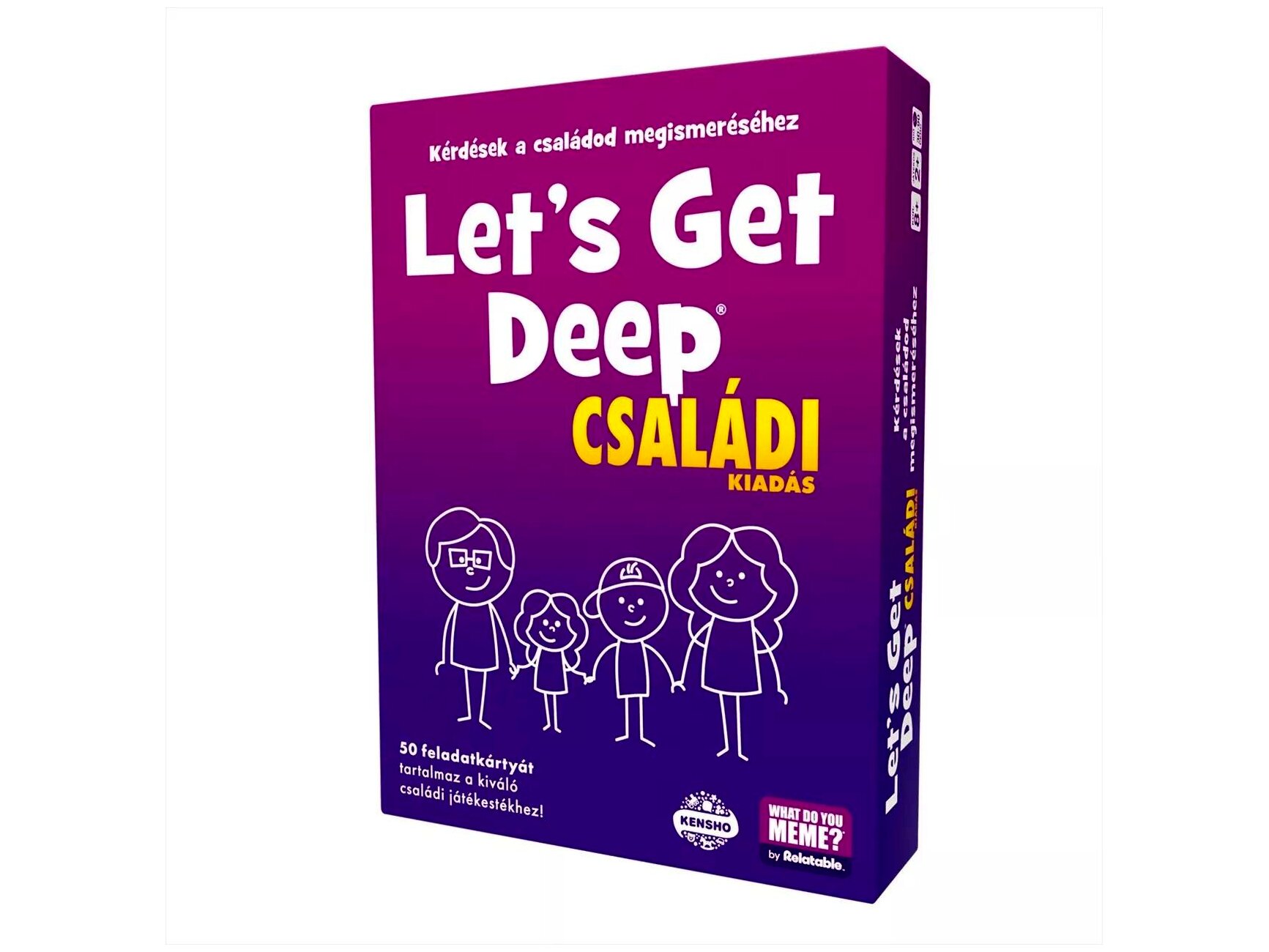 A Let’s Get Deep családi kiadása egy kártyaalapú beszélgetésindító játék. Több kategóriában – mélységben - találunk rengeteg elgondolkodtató kérdést, a választás szabadsága a miénk. A kérdések megválaszolása segít jobban megismerni egymást és egymás gondolatvilágát, de nem is ez az igazi plusz a családi kiadásban.