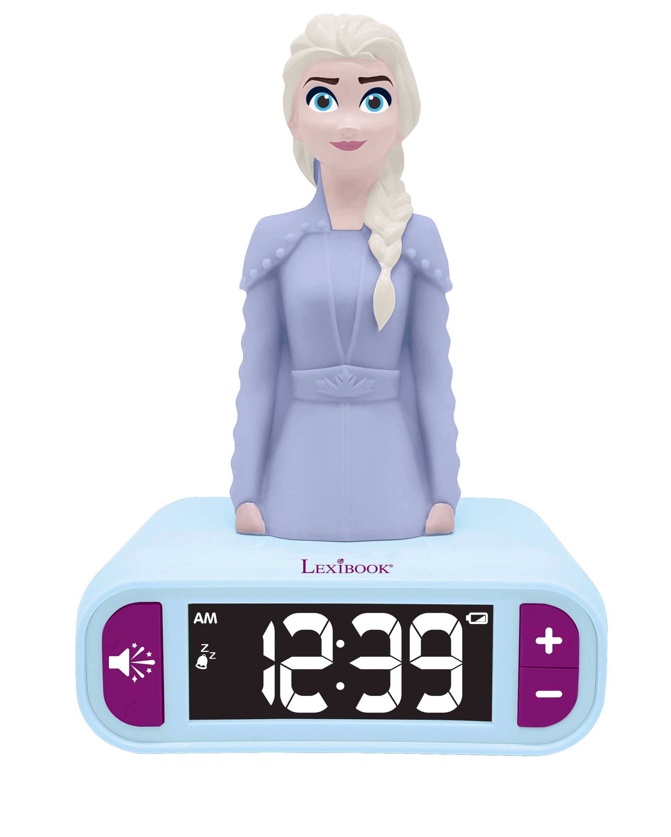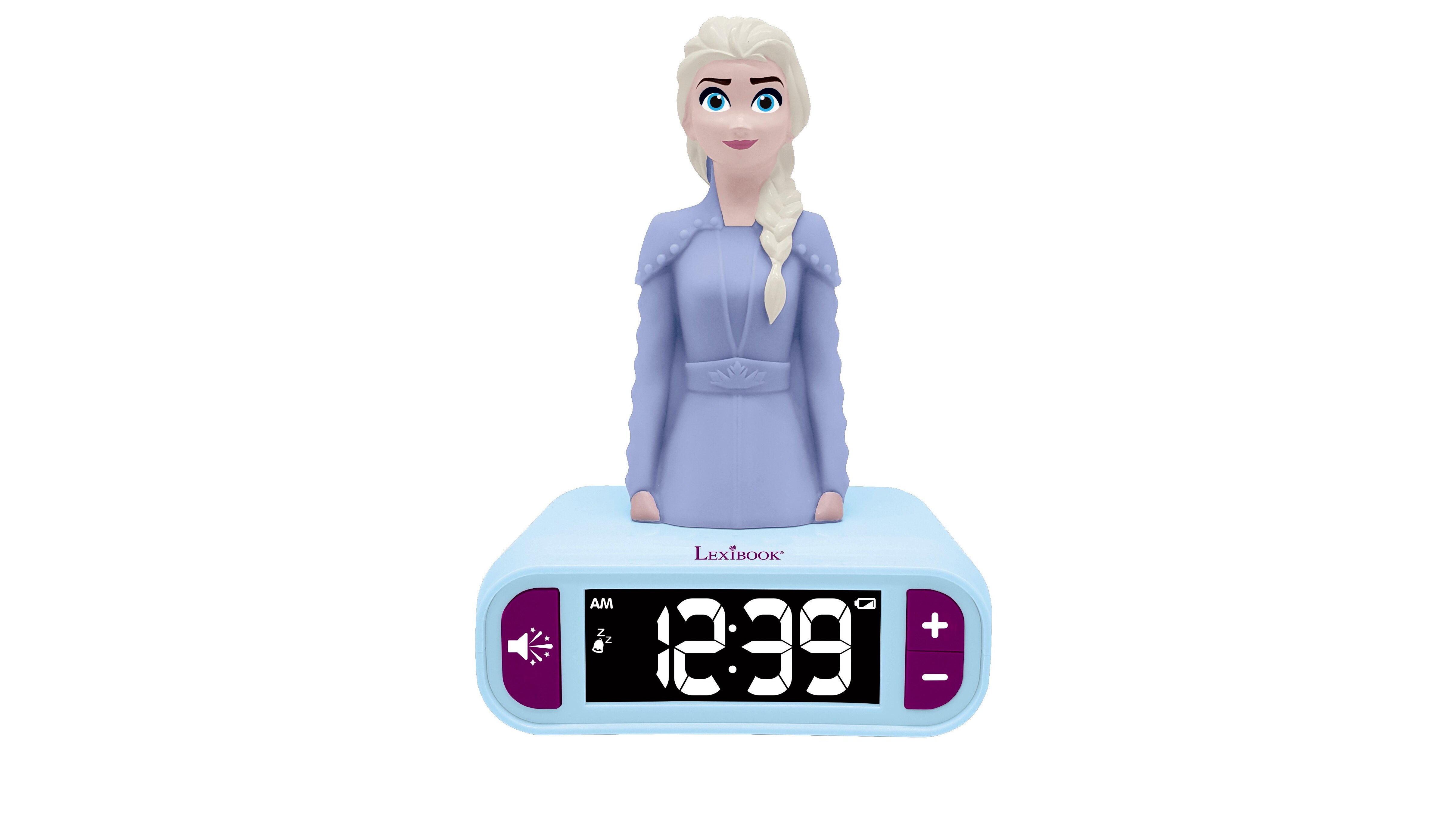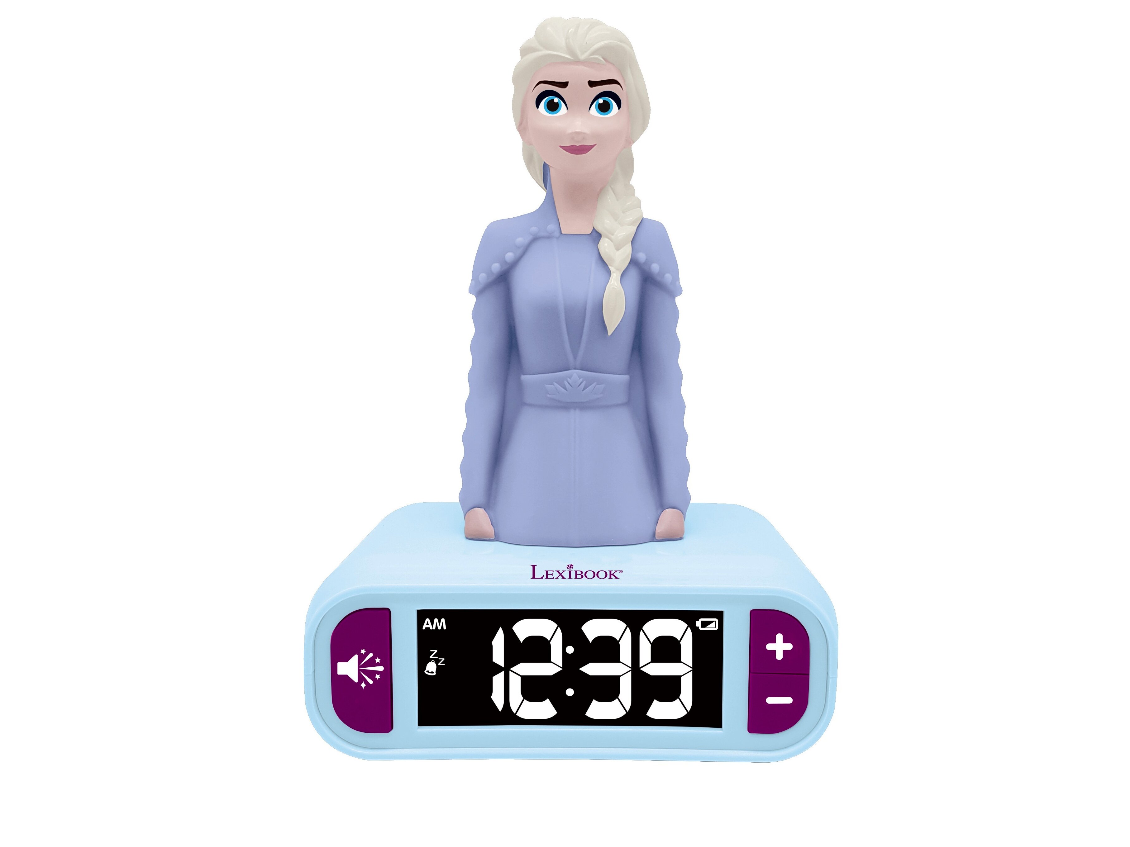 LCD kijelzője mutatja a pontos időt. Az óra tetején lévő Elsa figura diszkrét fénnyel világít, így akár éjjeli fénynek is használható. Több különböző fénnyel és hanghatással működik, akár ébresztőóraként is használhatjátok szundi funkcióval.A játékot 3 éves kortól ajánljuk.