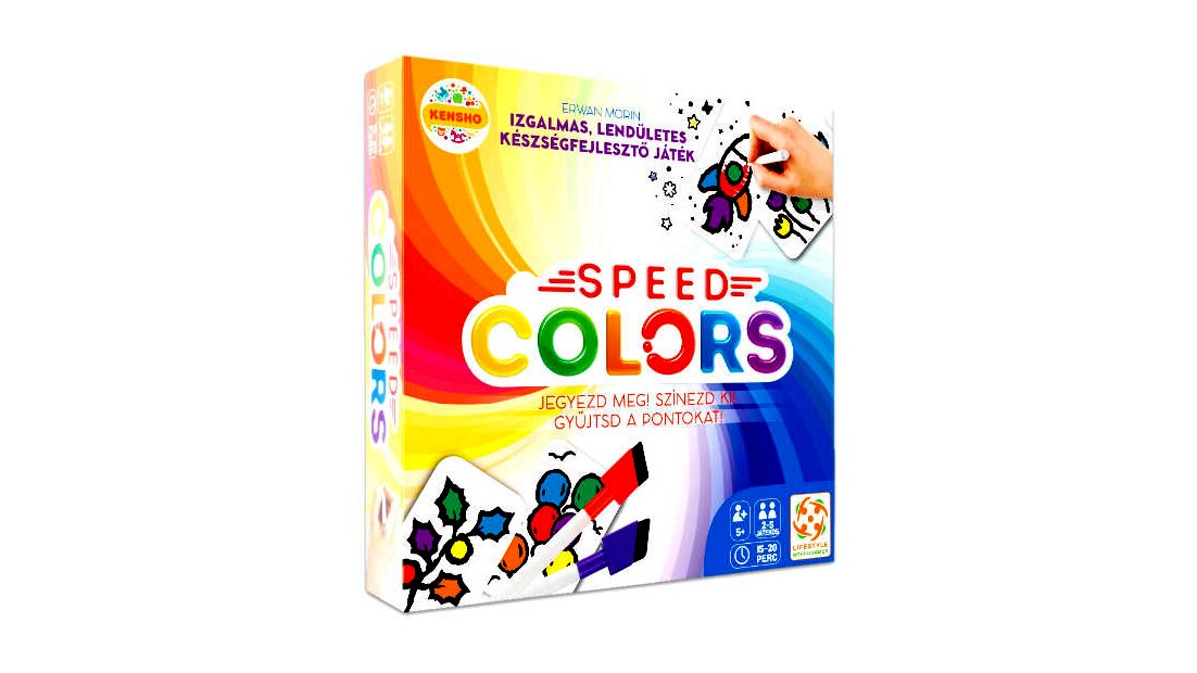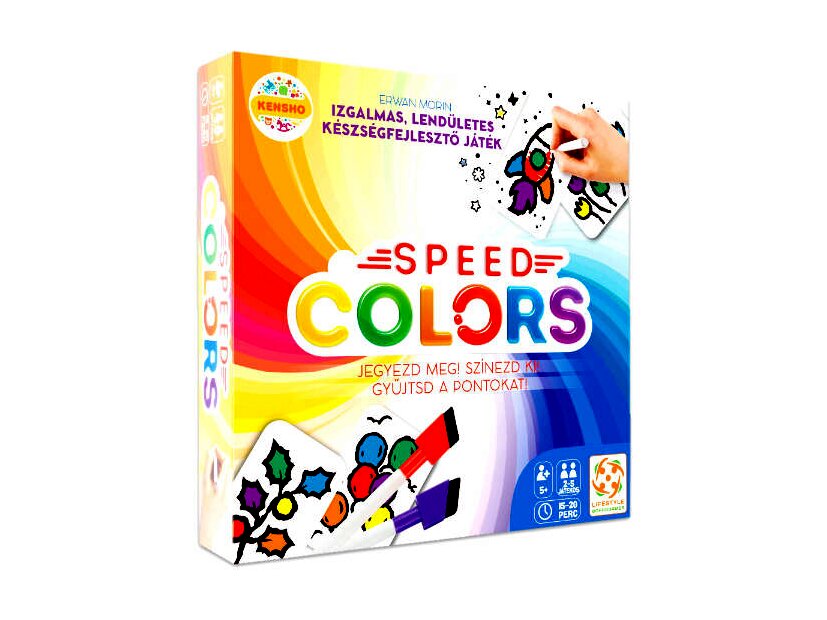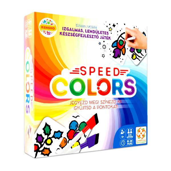 A Speed Color társasjáték célja, hogy te legyél a legügyesebb festőművész. A társasjáték során meg kell jegyezni a kihúzott kártya színes oldalán lévő képet, majd meg kell fordítani a kártyát és a fekete-fehér képet úgy kell kiszínezni, ahogy a másik oldalán volt a lehető leggyorsabban.
