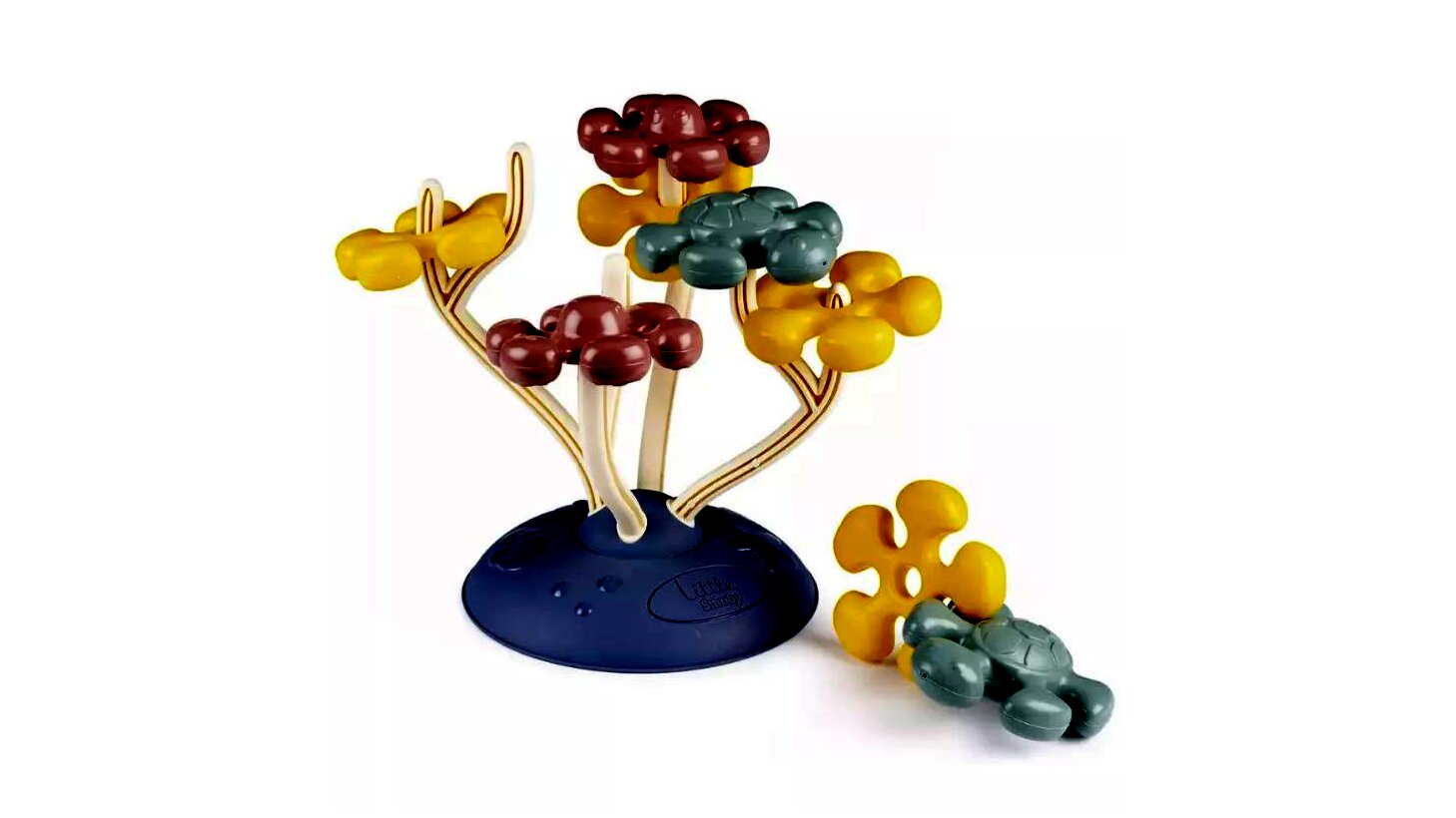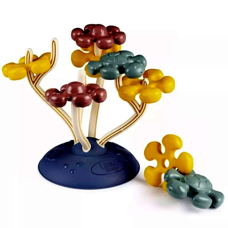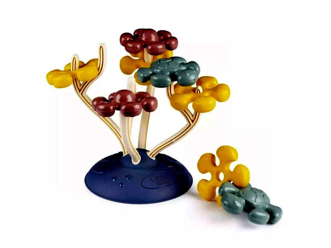 A Little Smoby Korallépítő bébijátékával a legkisebbek egy színes, izgalmas formákkal feldíszített korallt építhetnek meg. A dobozban az alap mellett 8 elem található, amelyeket a kicsik forgathatnak, egymáshoz illeszthetnek, vagy tetszőlegesen ráhelyezhetnek az alapból kiálló ágacskákra. A formák között virágot, teknőst és polipot találnak a lurkók. A virág forma ráfűzhető az ágakra, a polip és a teknős az ágacskák tetejére helyezhető.A játék hozzájárul a taktilis és vizuális érzékelés fejlődéséhez, emellett fejleszti a picik szem-kéz koordinációját és finommotorikáját. A játékszett kiváló minőségű anyagokból készült, így a gyerekek sokáig élvezhetik majd a vele való játékot.