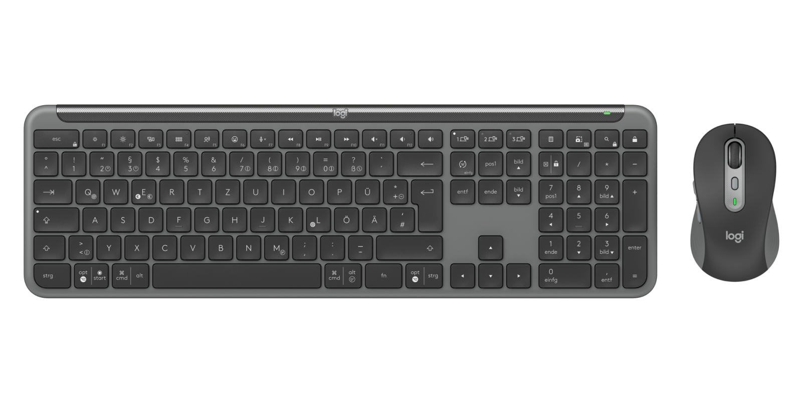 Logitech MK950 Signature Slim billentyűzet + egér szett (német, vezeték nélküli, grafit)