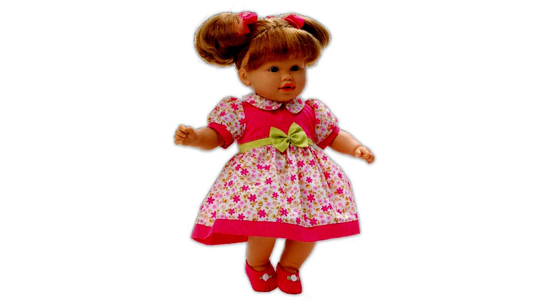 Legyél az anyukája az aranyos Loko hajasbabának! A Loko hajasbaba elegáns nyári ruhában bébije rózsaszín - fehér - zöld virágmintás, zöld masnis nyári ruhába öltözve várja, hogy gondoskodj Róla és elhalmozd Őt szereteteddel. Fésüld meg a kislány hosszú barna haját, és készíts elbűvölő frizurákat számára, hogy a Te kislányod legyen a legcsinosabb gyermek az óvodában!