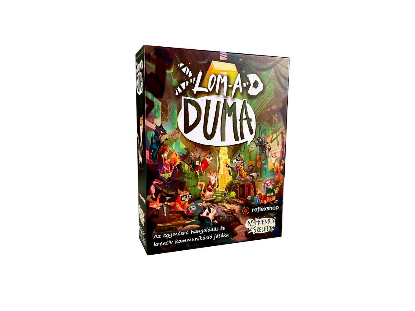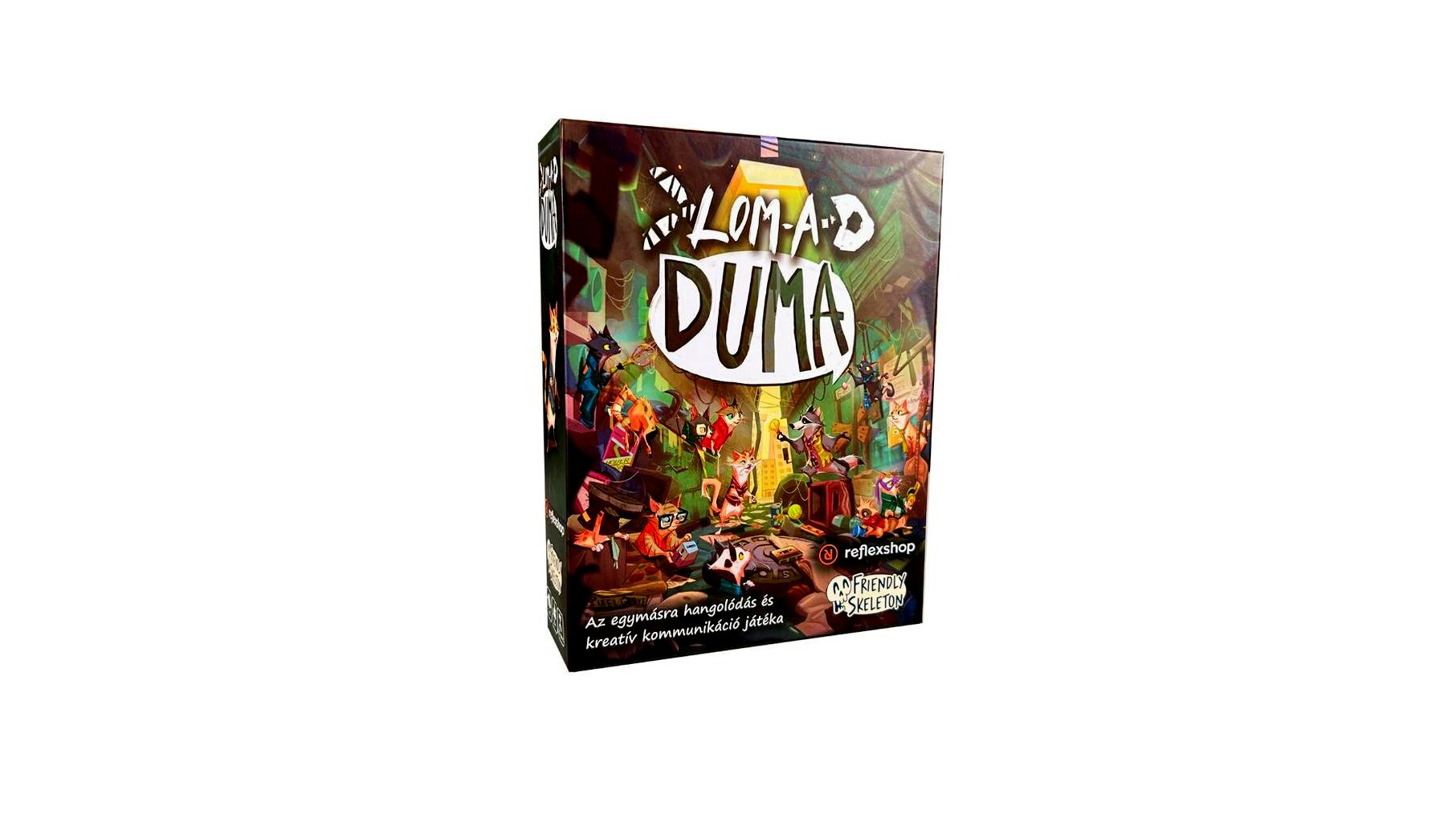 A mosómedve szeret jó üzleteket kötni, de sajnos a macskák egy szavát se értik… Egy közös nyelvük van csupán: a lomok! Kommunikáljatok egymással az apróbb kacatokkal, találjátok ki, ki mire gondolhatott, és virágoztassátok fel közösen ezt a sikátort!A Lom-a-duma egy kooperatív asszociációs játék, amelyben mosómedvék és macskák próbálnak kommunikálni egymással úgy, hogy különböző lomokat párosítanak össze különböző szókártyákkal. Dolgozzatok össze, és vergődjétek át magatokat az egyre nehezedő fordulókon!