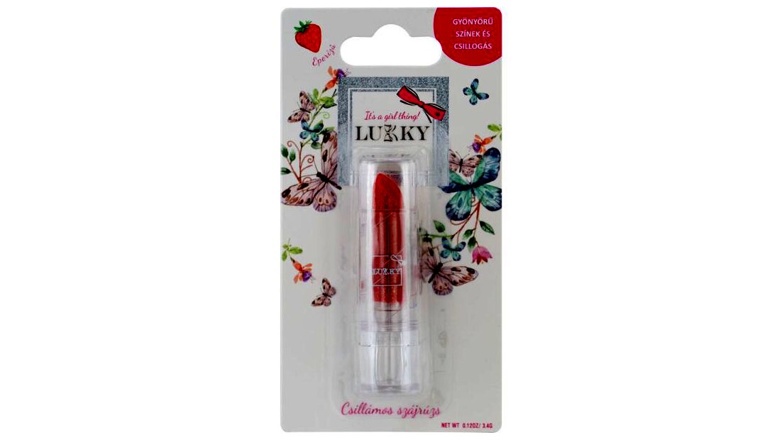 Lukky, Eper ízű, csillámos szájrúzs, piros