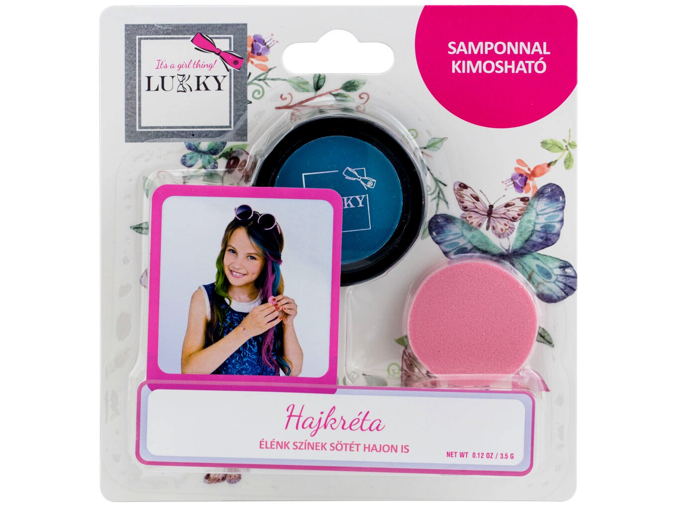 A Lukky hajkrétával egyszerűen és gyorsan varázsolhatnak maguknak a lányok színes hajtincseket. Ha extrém megjelenésre és vadító színekre vágynak a csajok, de idegenkednek a hajfestékektől ez a praktikus hajkréta tökéletes választás! Használata könnyű: csak végig kell húzni a választott hajtincseken. A szivacskorong a sötétebb színű hajat is befogja, samponnal pedig könnyedén lemosható.