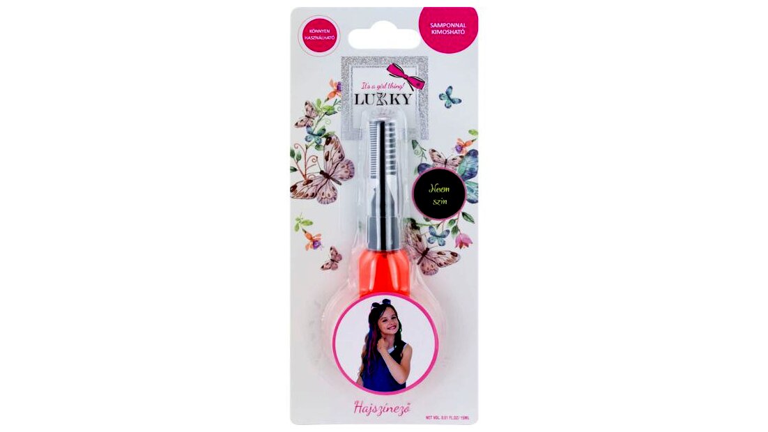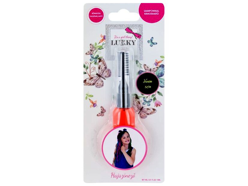 Tündöklő színes hajak a Lukky hajszínezőkkel! Használata biztonságos, így a gyerekek is bátran kipróbálhatják. A hajsmink vízbázisú, samponnal könnyen lemosható. Legyen gyerekzsúr, születésnap, farsang vagy szilveszter, a Lukky hajszínező tökéletes választás!