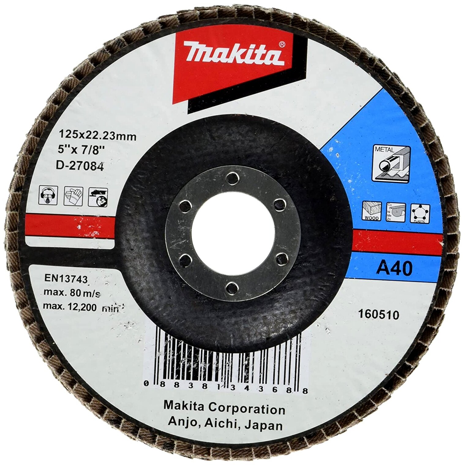 Makita D-27084 lamellás csiszoló korong, 125mm, A40
