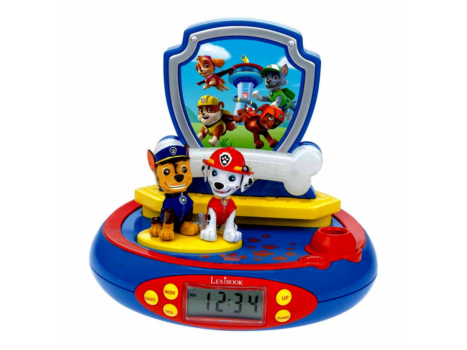 Mancs Őrjárat Lexibook projektoros óra az időt mutatja valamint ébresztőórát és hangeffekteket is tartalmaz. Akár a mennyezetre is kivetíthetitek vele a pontos időt hatásos fény formájában, valamint éjszakai fényként is funkcionál.