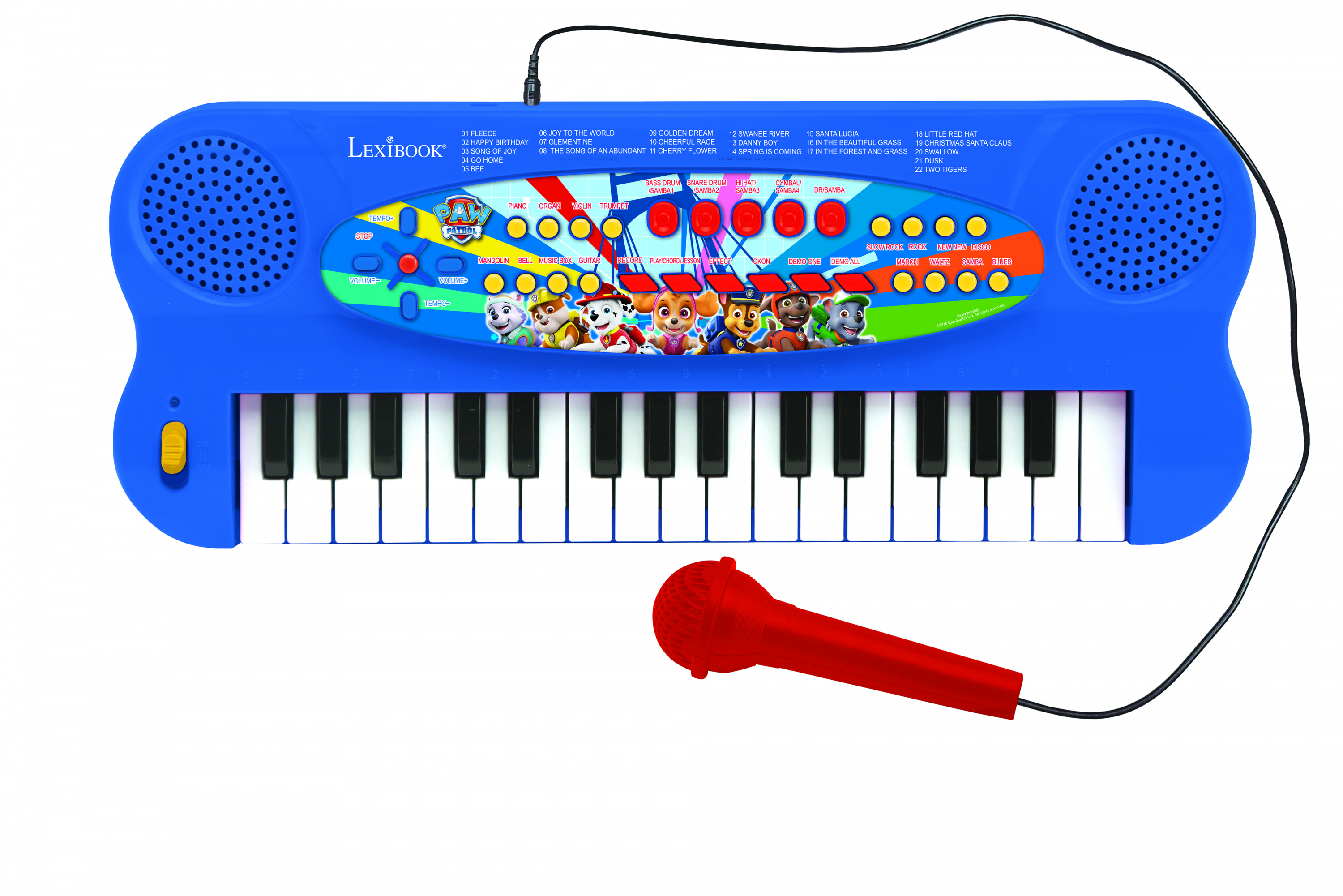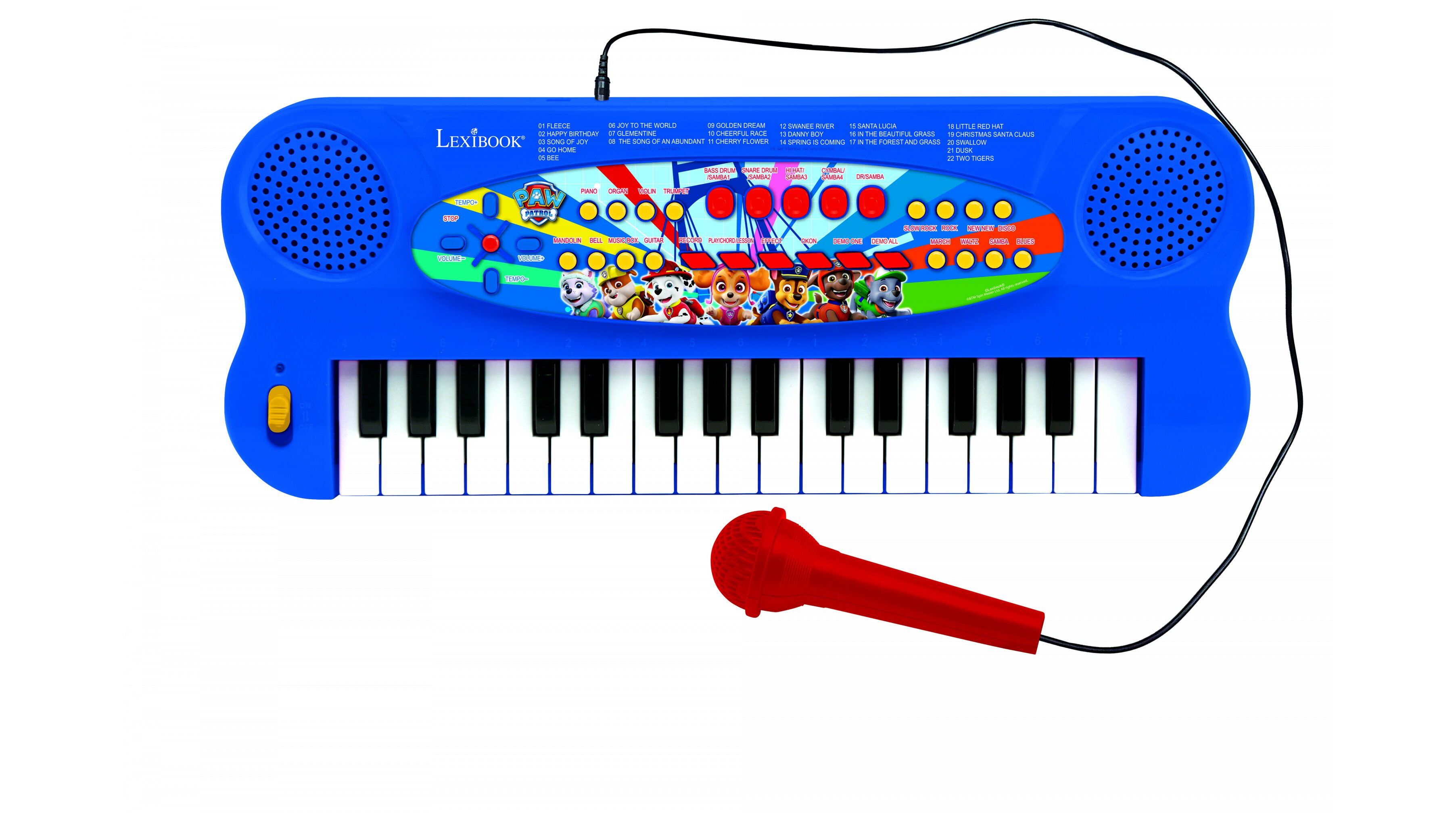 Most Mancs Őrjárat kivitelben kapható. A 32 gombos zongorához egy mikrofon is kapható, így a kis zenészek több fronton is kipróbálhatják magukat.