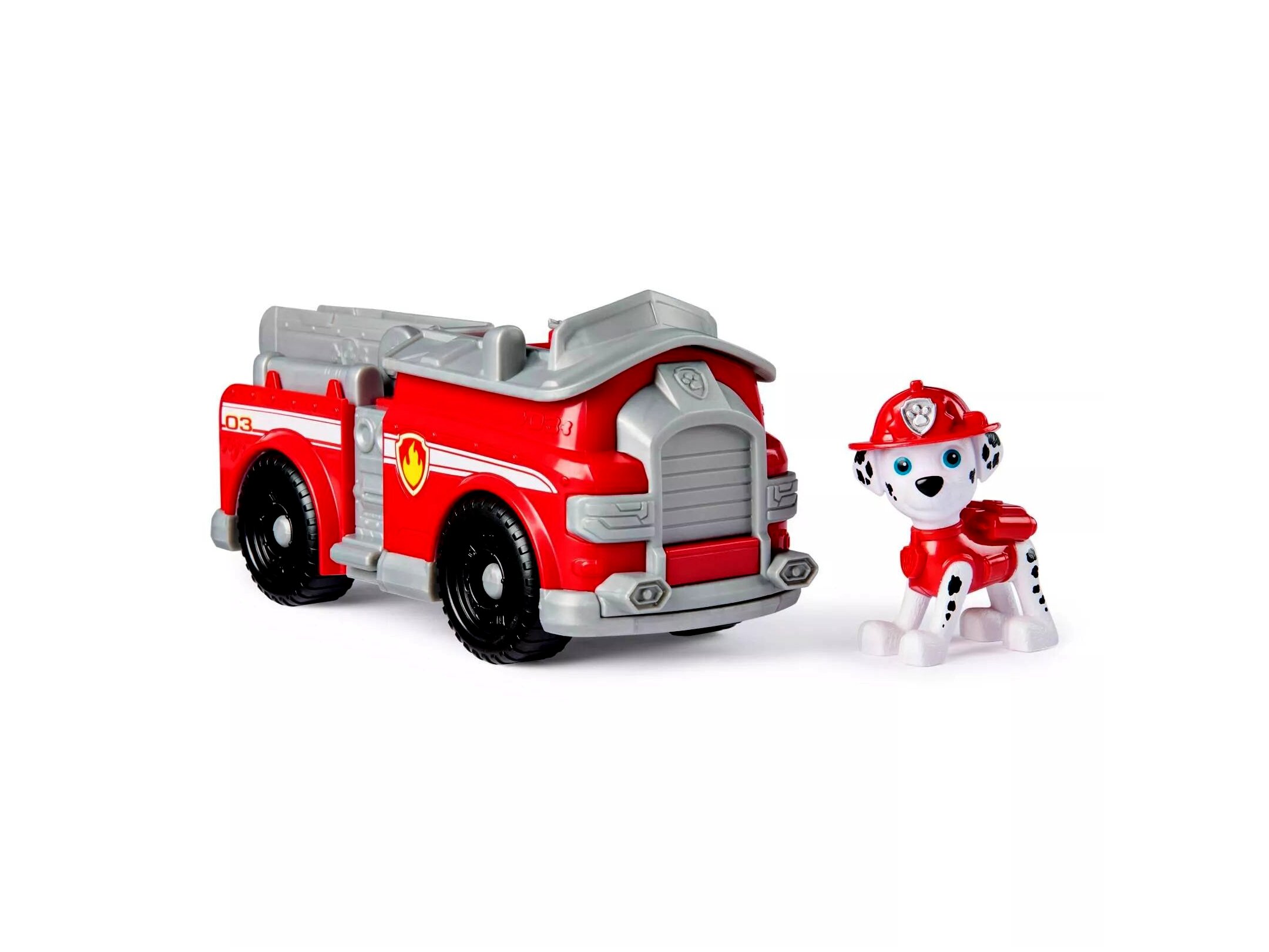 Marshall járműve kalandra csábítja a kis hősöket. A játékszettben megtalálható Marshall és járműve, amely olyan részletgazdag kidolgozású, akárcsak a sorozatban. A figura kivehető a járműből.