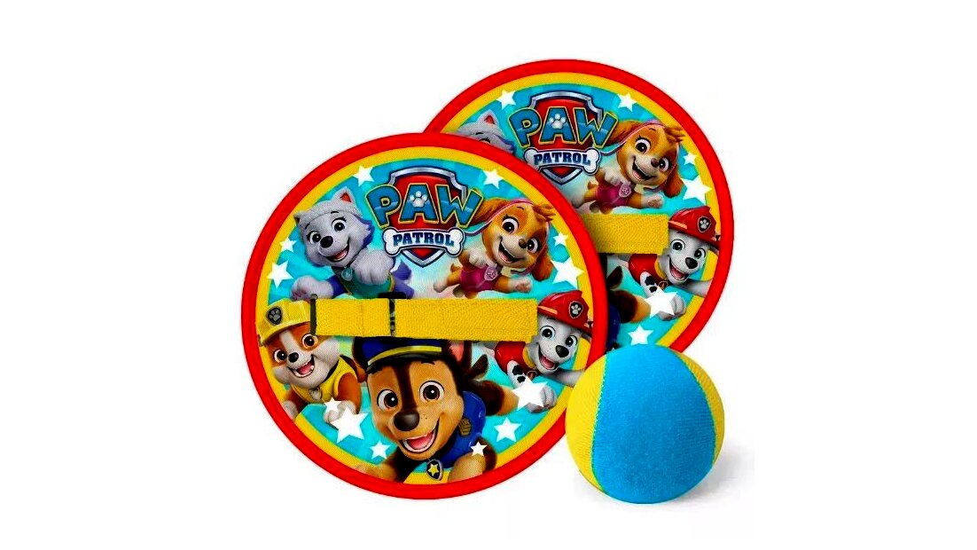 A Mancs őrjárat mintájú tépőzáras labda-elkapó játék egy egyszerűen használható, kinti mozgásra ösztönző ügyességi játék: a puha labda a tépőzáras felületekre tapad, így a dobás–elkapás gyorsan sikerélményt ad a gyerekeknek.