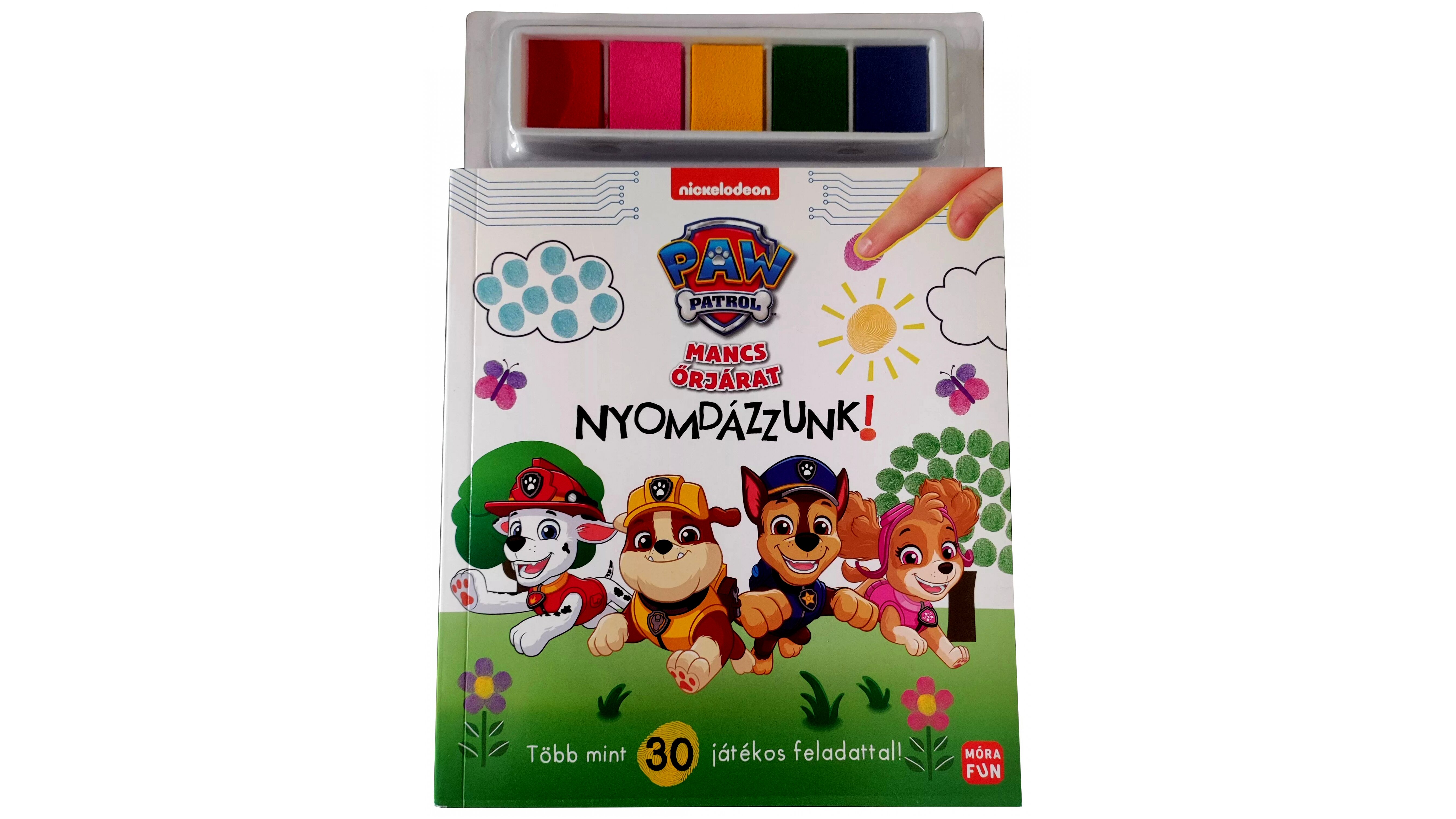 Csatlakozz Ryderhez és a kutyikhoz egy kreatív küldetésre a Kaland-öbölben!Ez a kutyisztikus foglalkoztatókönyv telis-tele van Mancs Őrjárat-os feladványokkal, melyek arra bátorítják a kicsiket, hogy használják szabadon a fantáziájukat, miközben krumpli- vagy ujjnyomdával díszítik kedvenc kutyihőseiket. Ötszínű nyomdapárna és több mint 30 feladat várja a kezdő és a rutinos ujjnyomdázókat ebben a foglalkoztatókönyvben. Sok más kaland mellett feldíszíthetik a Vakkantburg várát, vagy éppen segíthetnek a bátor kutyiknak a mentésekben.