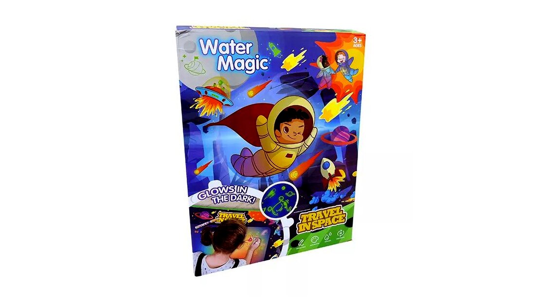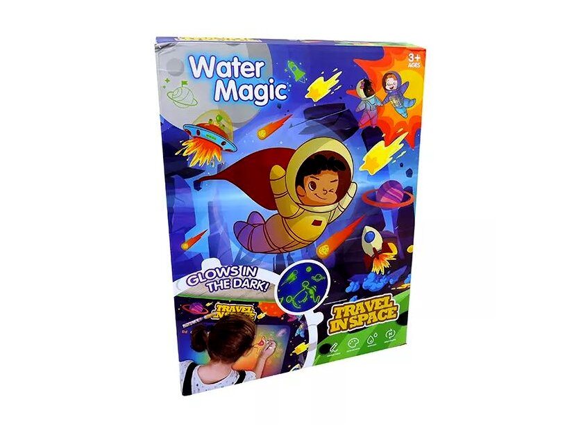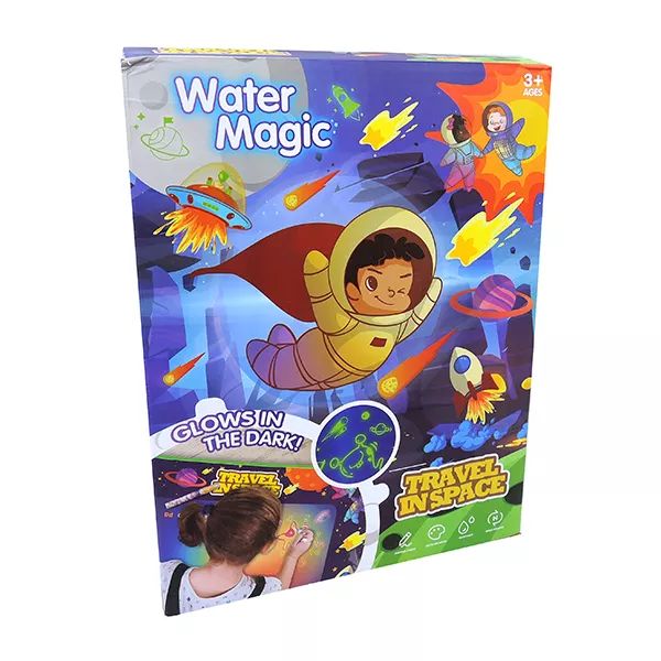 A dobozban található speciális tollat csak fel kell tölteni vízzel, és a kicsik már kezdhetik is az alkotást a szőnyegen. Víz hatására az előre megrajzolt minták előbújnak, és mielőtt megszáradna a szőnyeg, és eltűnne a művészi alkotás, sötétben, a megvilágított részek világítanak. A kis művészek egészen biztosan órákon keresztül alkotnak majd a szőnyeg segítségével.A toll vízzel működik, nem maszatol és nem ken össze semmit.