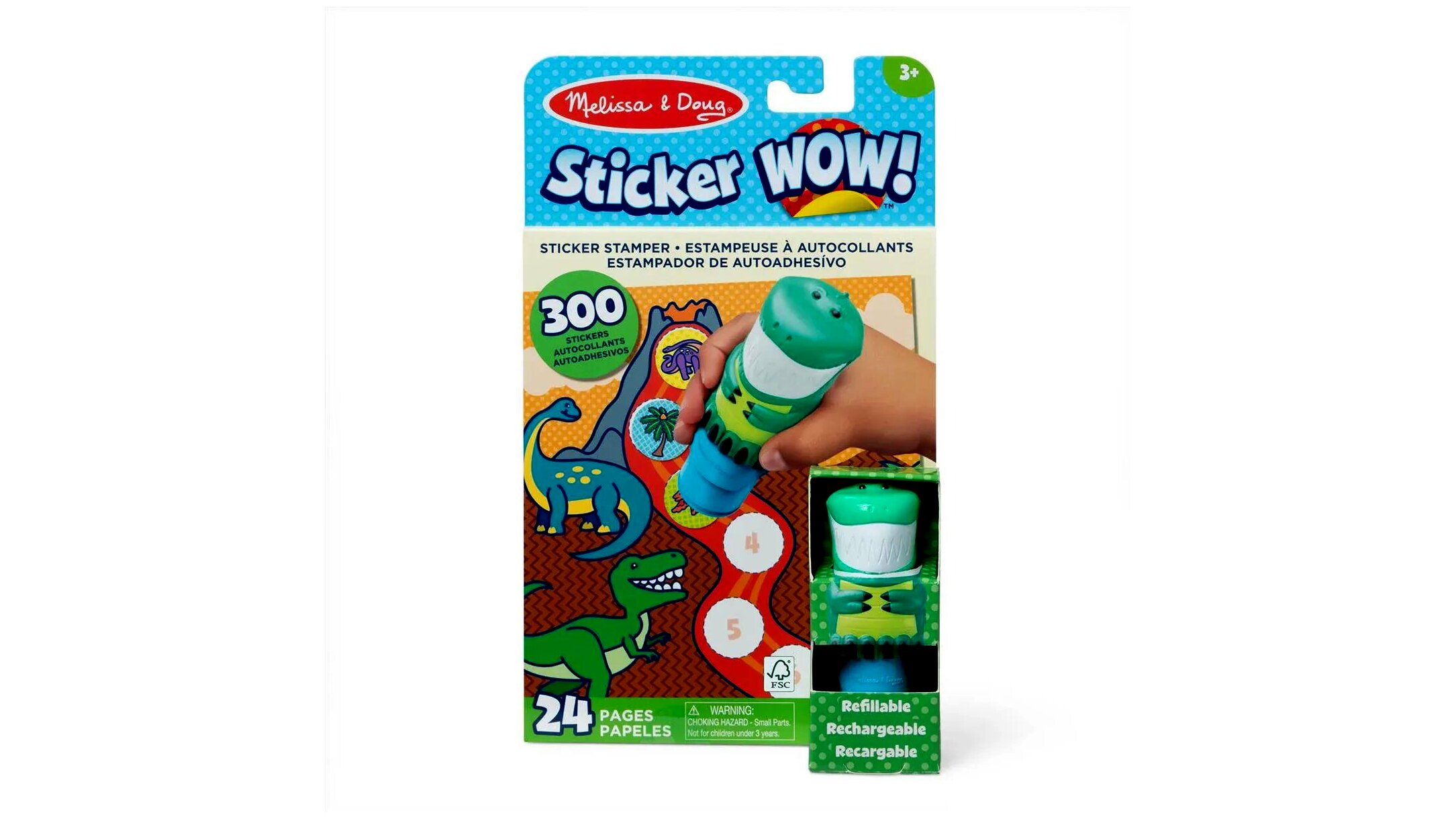 A Melissa & Doug: Sticker Wow! - Dinoszaurusz egy különleges pecsételő készlet, amely több mint 300 ragasztós matricát tartalmaz. A készlet a dínók világába kalauzolja a kicsiket, és lehetővé teszi számukra, hogy saját történeteiket alkossák meg a matricák segítségével. A készlethez tartozó pecsét könnyen utántölthető, így hosszú távon is használható marad.