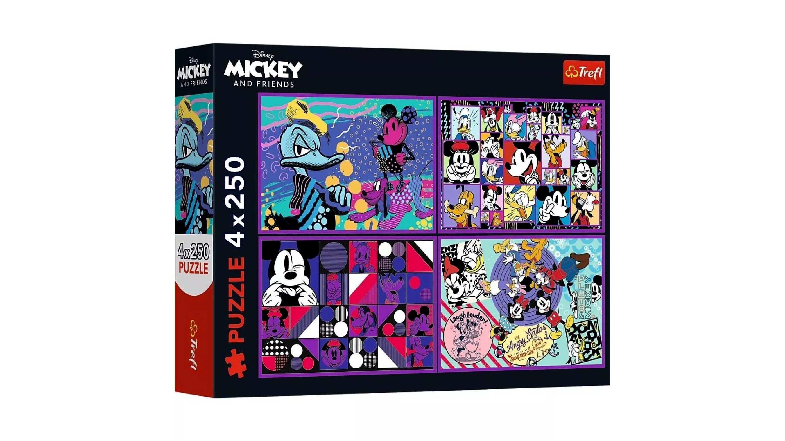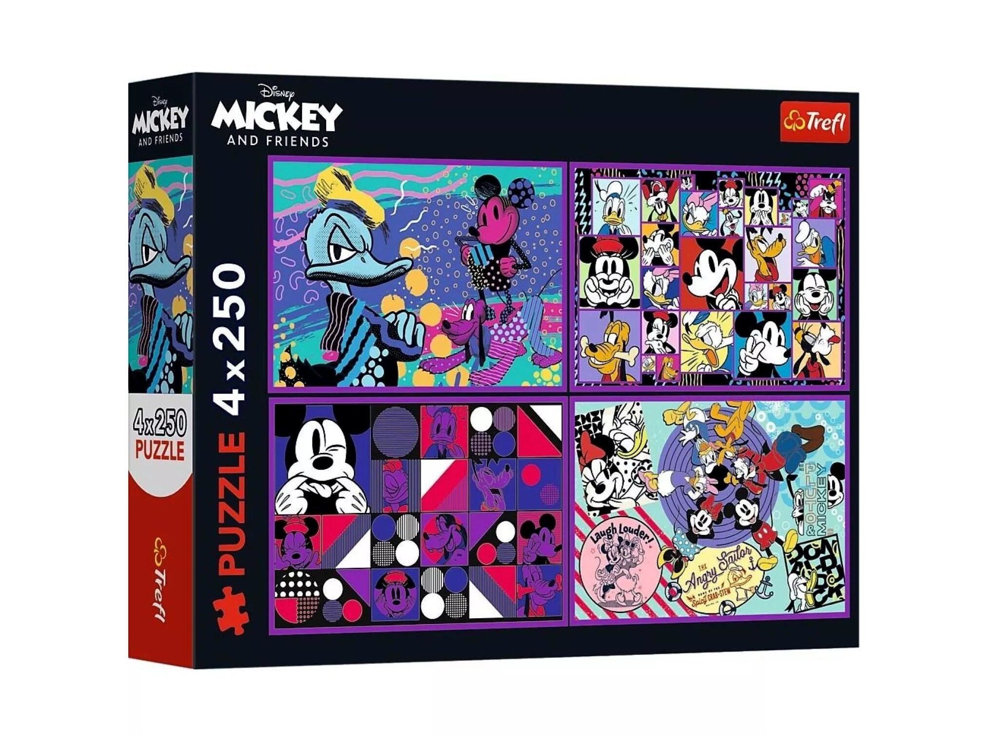 Prémium minőségű, 4 x 250 darabos puzzle, amely mindegyikén Mickey egér és barátai találhatók. A darabok tökéletesen illeszkednek. Kicsik és nagyok számára egyaránt izgalmas és szórakoztató időtöltés, amelyet egyszerűen képtelenség megunni. A puzzle szétszedhető, majd újra összerakható, ha pedig összeragasztjuk a darabokat, bekeretezve akár a szoba dísze is lehet.A puzzle játékok nem csak a memóriát, a megfigyelő- és a koncentrációs képességet fejlesztik, türelemre és kitartásra is tanítanak.