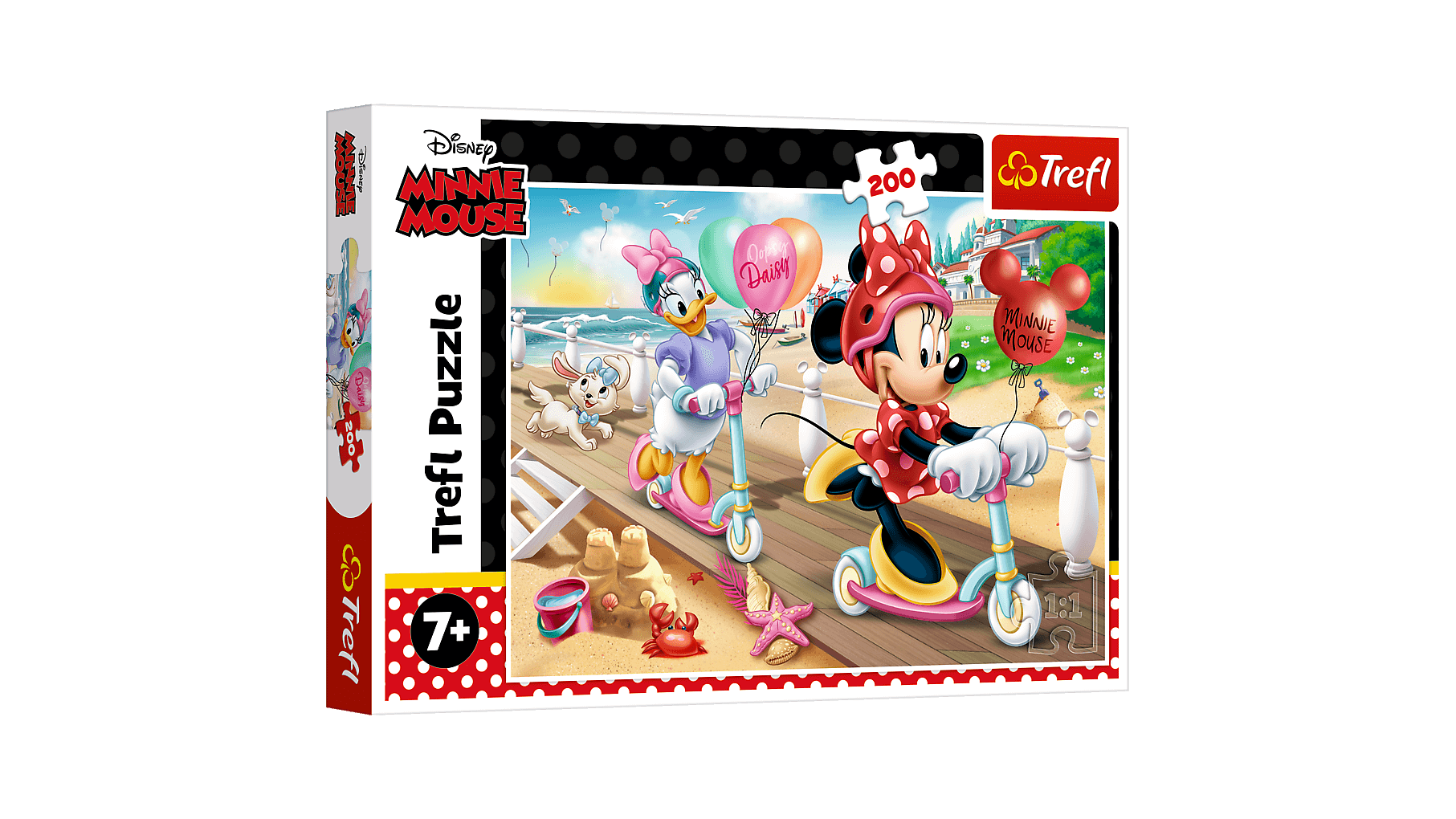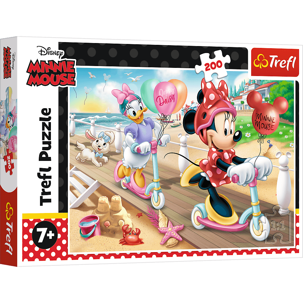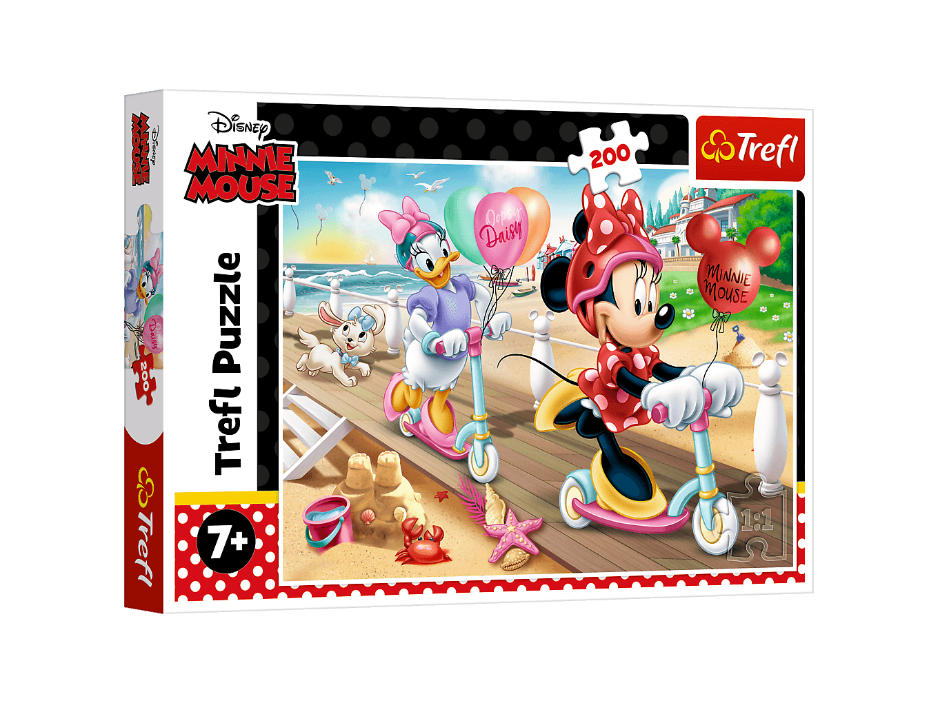 A gyerekek Minnie egér a tengerparton nyári képét rakhatják ki az 200 db-os, minőségi kirakó segítségével.