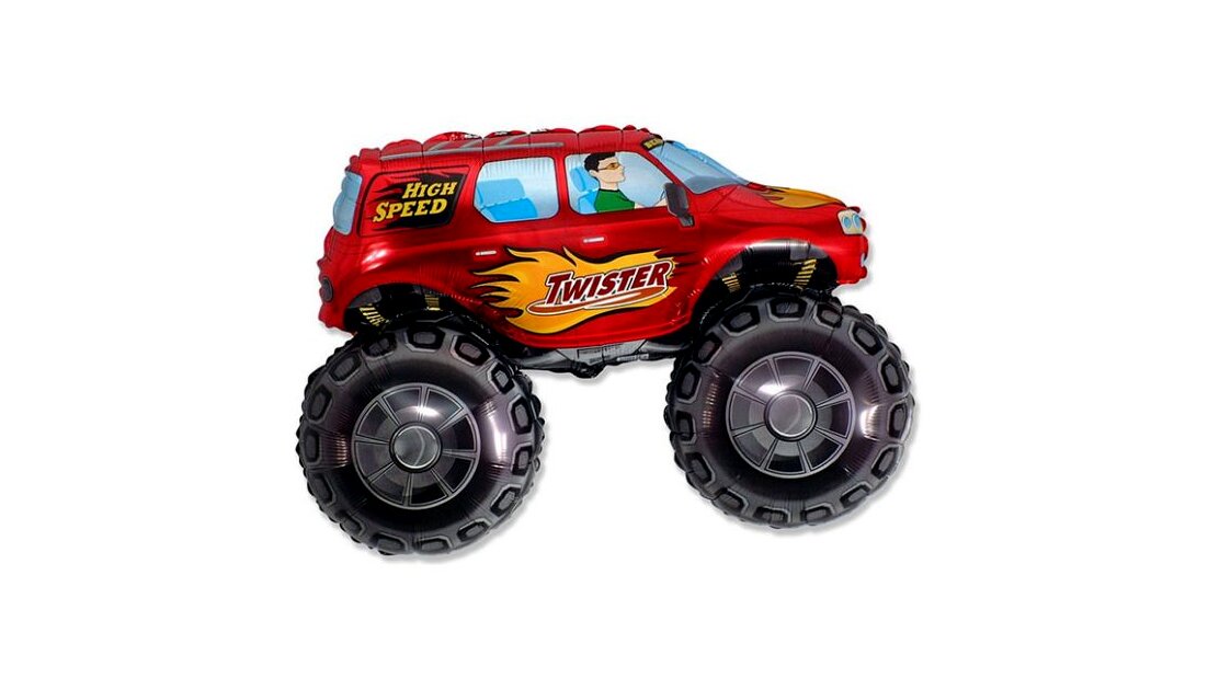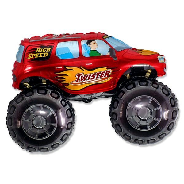 Vagány Monster Truck jellegű autó formájú, nagy méretű fólia léggömb önzáró szeleppel. A kisfiúk kedvenc járgányaival még örömtelibbé varázsolható a születésnap vagy névnap.A lufit héliummal ajánlott felfújni.
