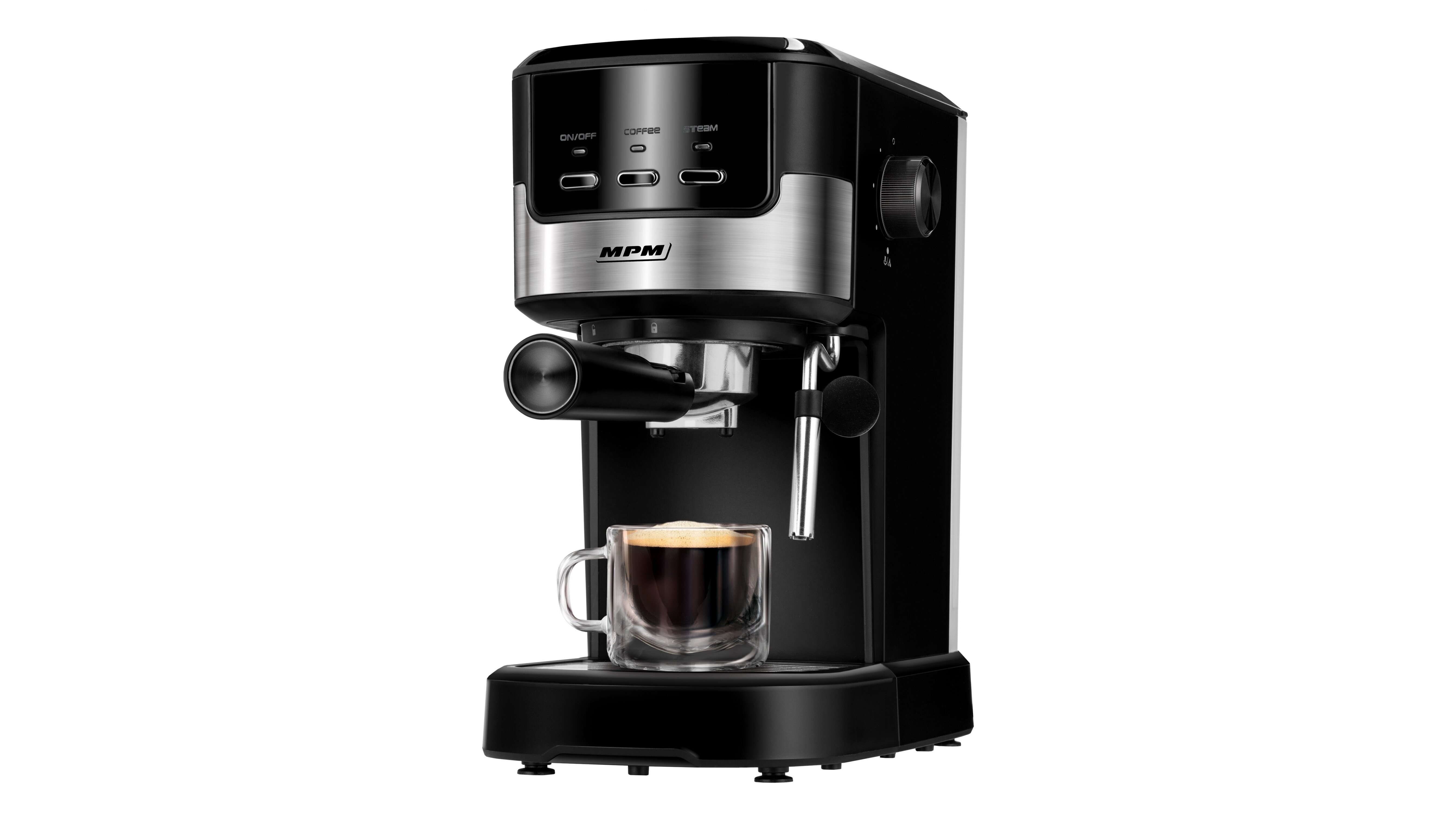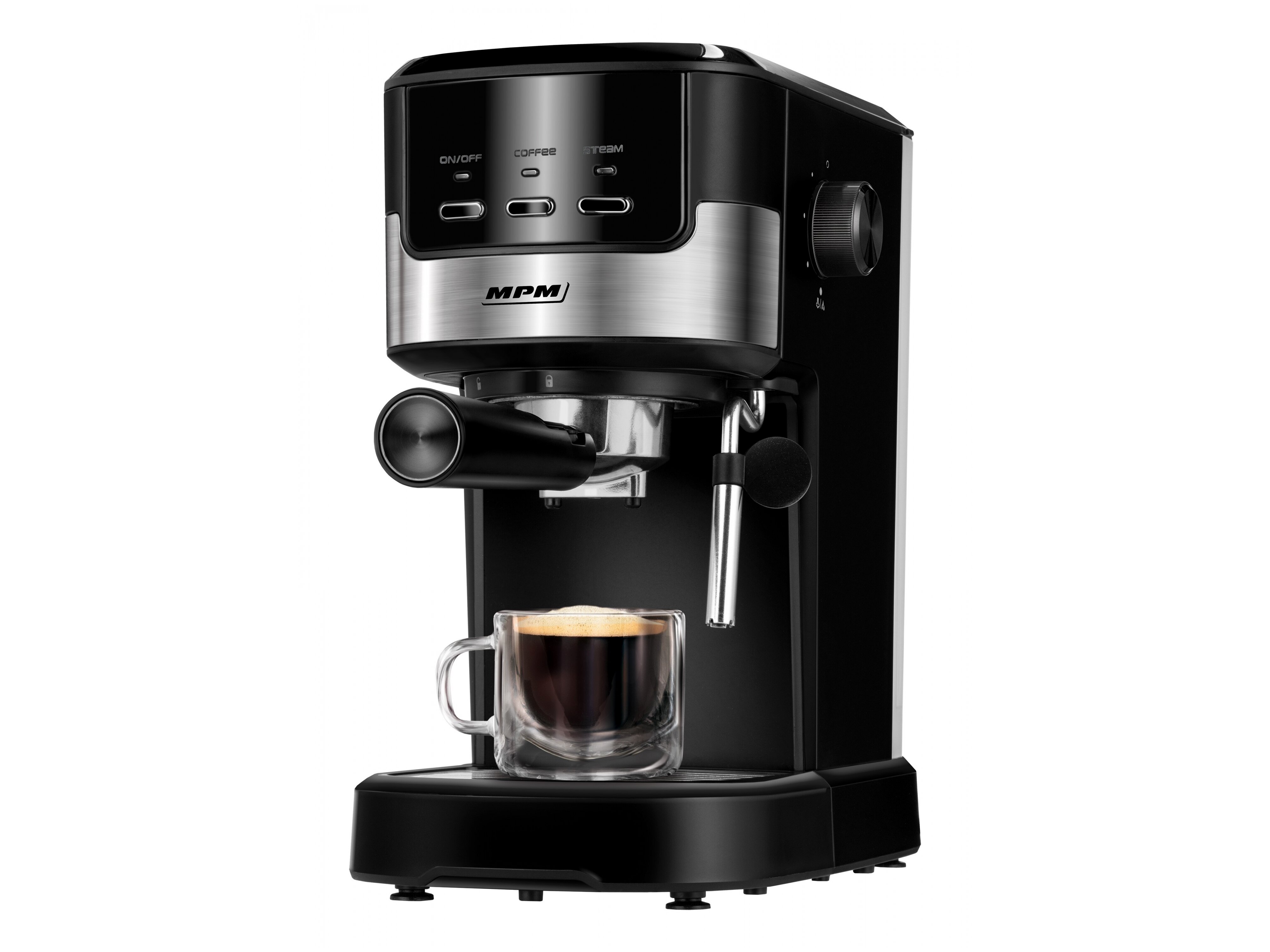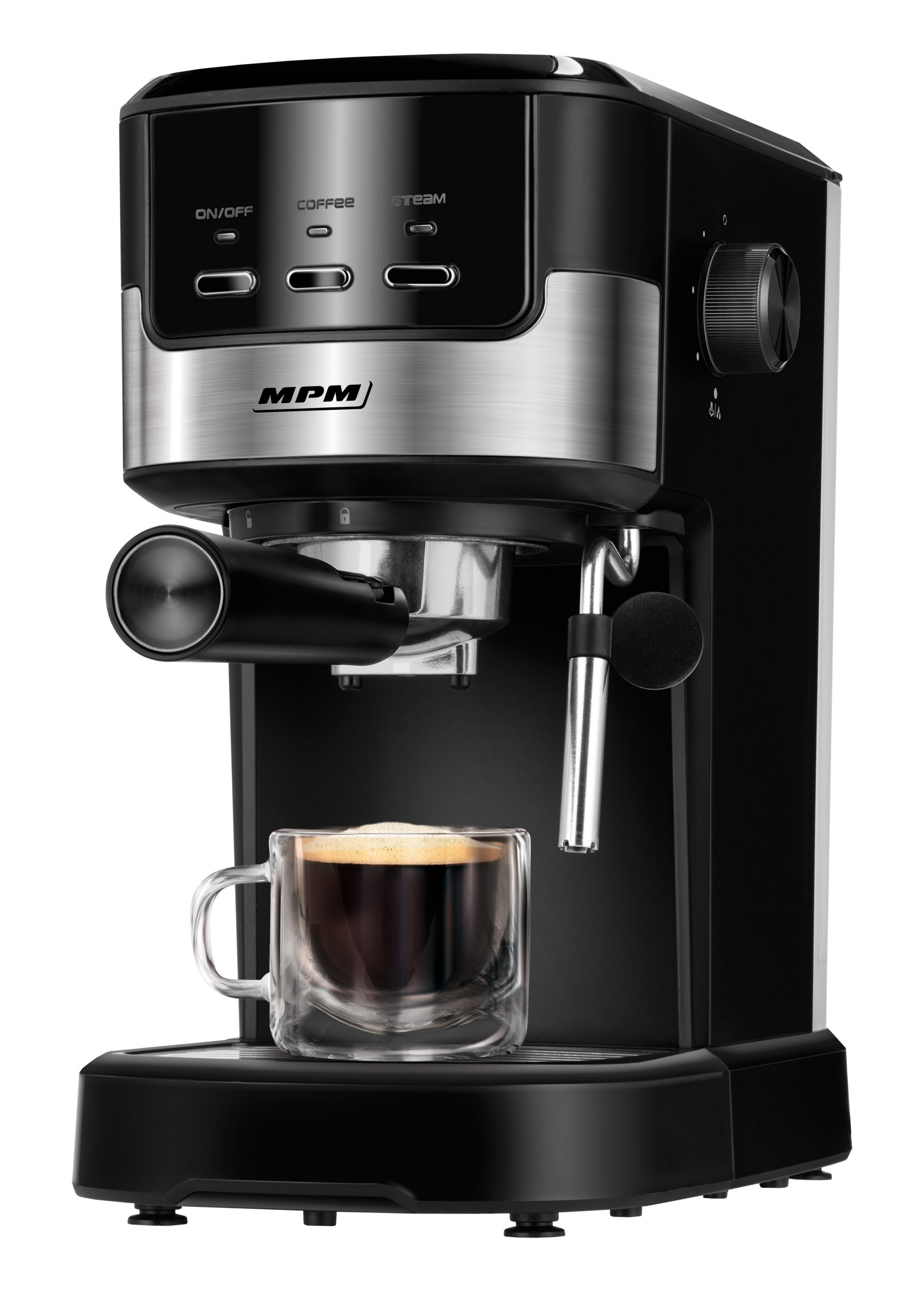 Az MPM MKW-13 egy pumpás eszpresszógép, amely őrölt kávéból készít eszpresszót, és tejhabosító fúvókájával cappuccinohoz, lattéhoz is használható. A 15 bar nyomású szivattyú, a kivehető víztartály és a kivehető csepptálca a mindennapi használatot és tisztítást teszi kényelmessé.