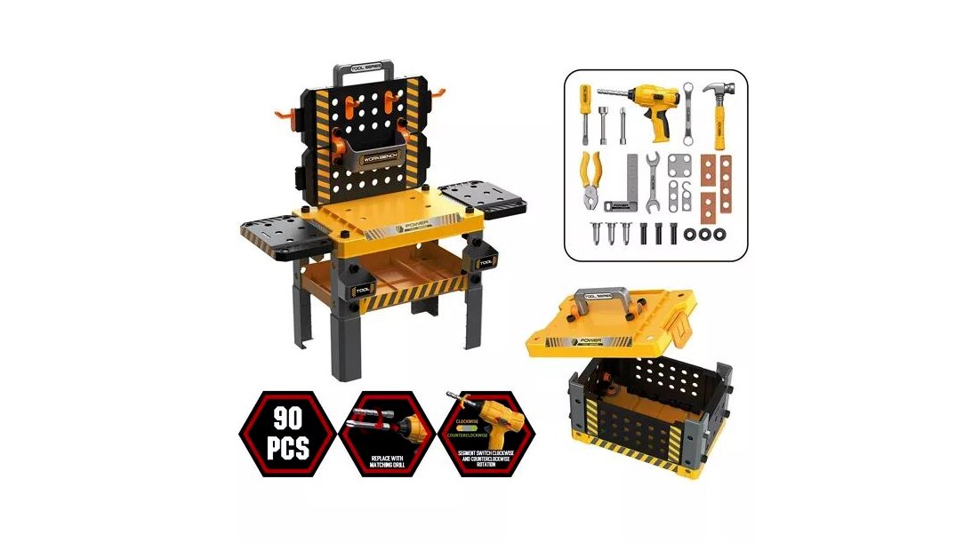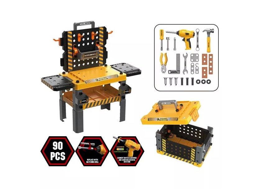 A munkapad szett egy játék szerszámkészlet, amely segíti a gyerekeket a barkácsolás világának felfedezésében.A termék jellemzői: