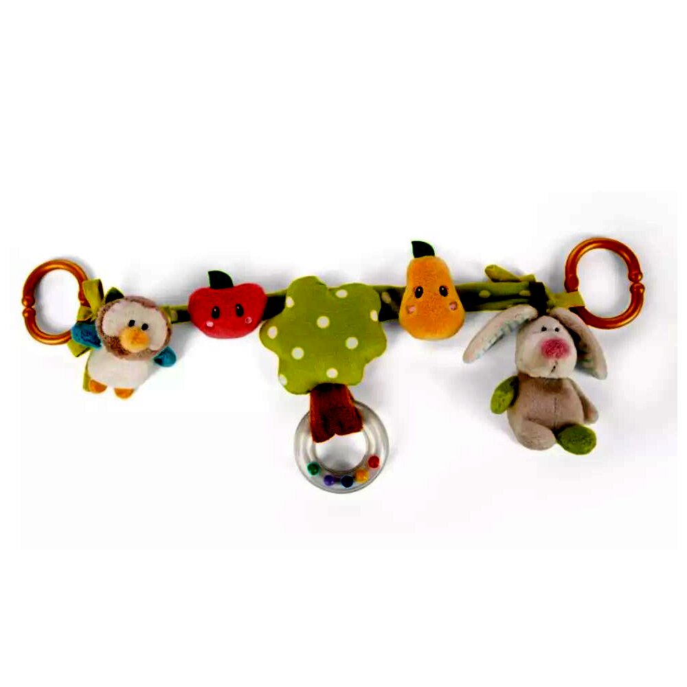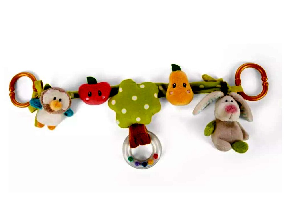 A My First NICI babakocsilánc öt darab, puha, 3D-s függőfigurával érkezik, és 40 cm hosszú. A csörgős bagoly, a nyuszika sípolóval, valamint a fogókás fa játék figyelésre, tapintásra és megfogásra ösztönöznek – és arra hívják a piciket, hogy minden érzékükkel fedezzék fel a világot.
