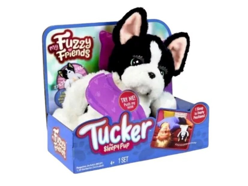 A My Fuzzy Friends pihe-puha durmoló kutyusa csak arra vár, hogy egy szerető kislány örökbe fogadja és gondoskodjon róla! A plüss blöki súlyozott tappancsainak köszönhetően bárhová le tud huppanni, és szinte azonnal álomba is szenderül - de persze ehhez szüksége van arra, hogy a gazdija megszeretgesse és megsimizze a buksiját vagy a pocakját.A négylábú barát multiszenzoros, ezáltal több helyen is érzékeli az érintést, és miden ébredés után változik, hogy épp hol vágyik egy kis simogatásra vagy vakargatásra. Ha a gyerekek megnyomják az orrocskáját, tüsszentő, bufiző vagy csuklásra emlékeztető hangot hallatva kíváncsi szemecskéit nagyra nyitja. A kutyus több mint 50 különböző hangot és reakciót tud kiadni, például a szundikálása során édesen horkant egyet-kettőt.