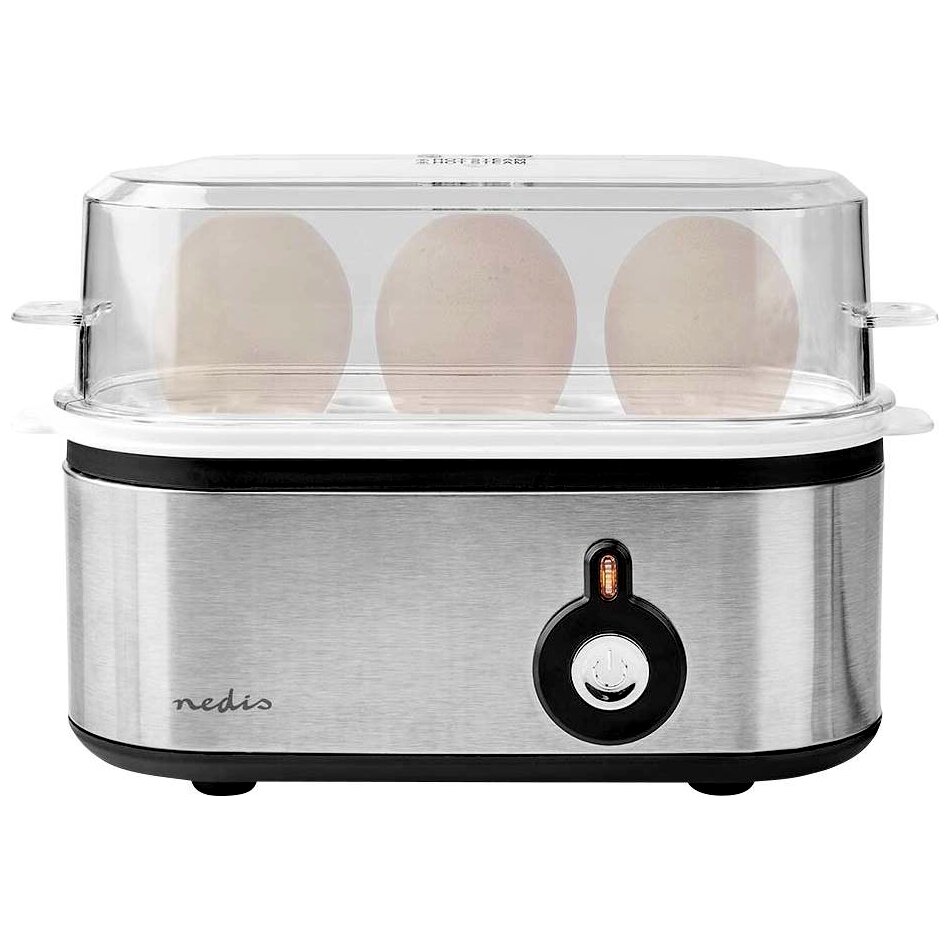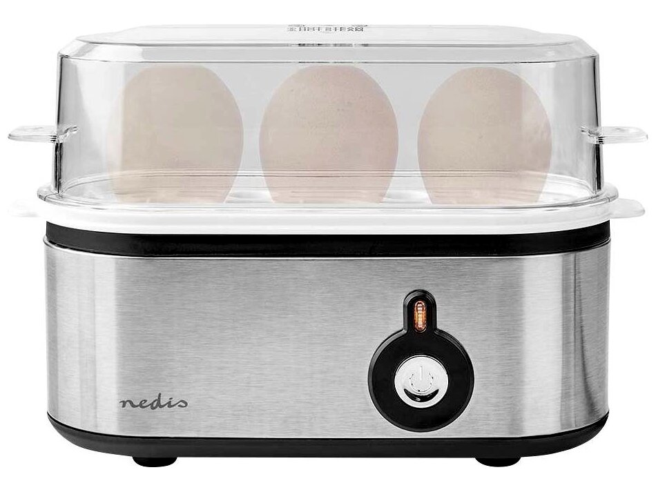 Nedis KAEB120EAL tojásfőző (3 tojás), 210 W, alumínium/fekete/átlátszó
