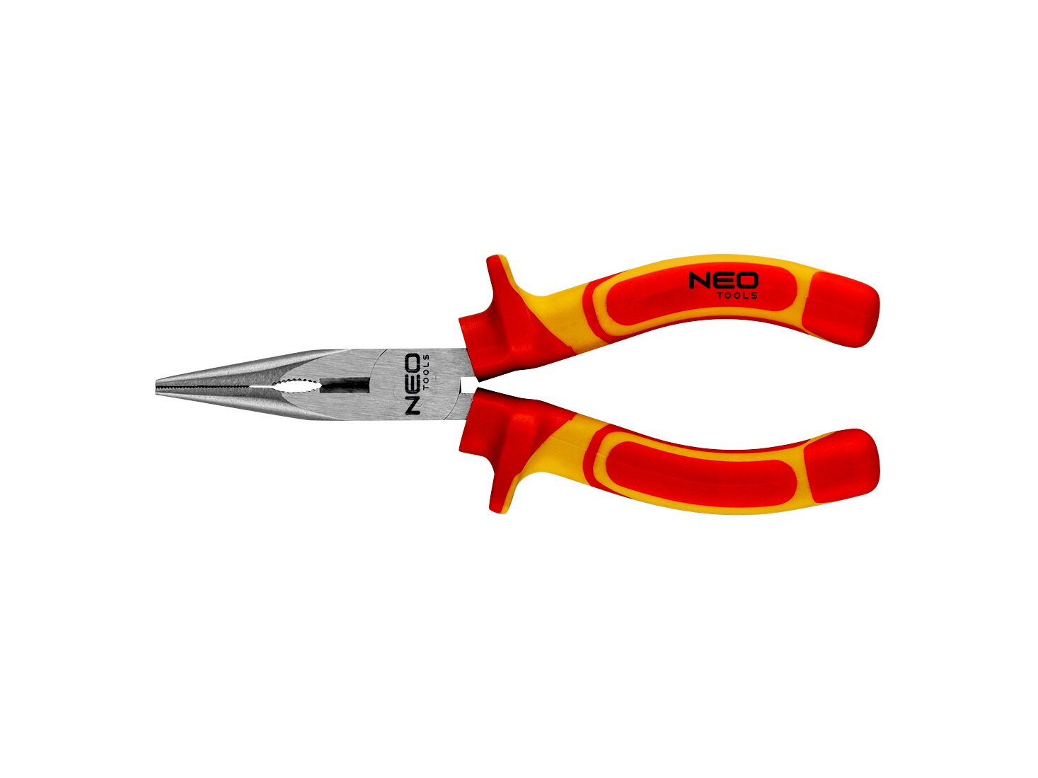 NEO hosszúcsőrű egyenes fogó, 1000 V. Max. 1000 V feszültség alatti használatra minősített. A kiváló minőségű, indukciósan edzett króm-vanádium acél pofák biztosítják az erős fogást és a hatékony vágást. Az ergonómikus bimateriál markolat növeli a használat komfortját. A termék megbízhatóságát bizonyítja a 25 éves jótállás.