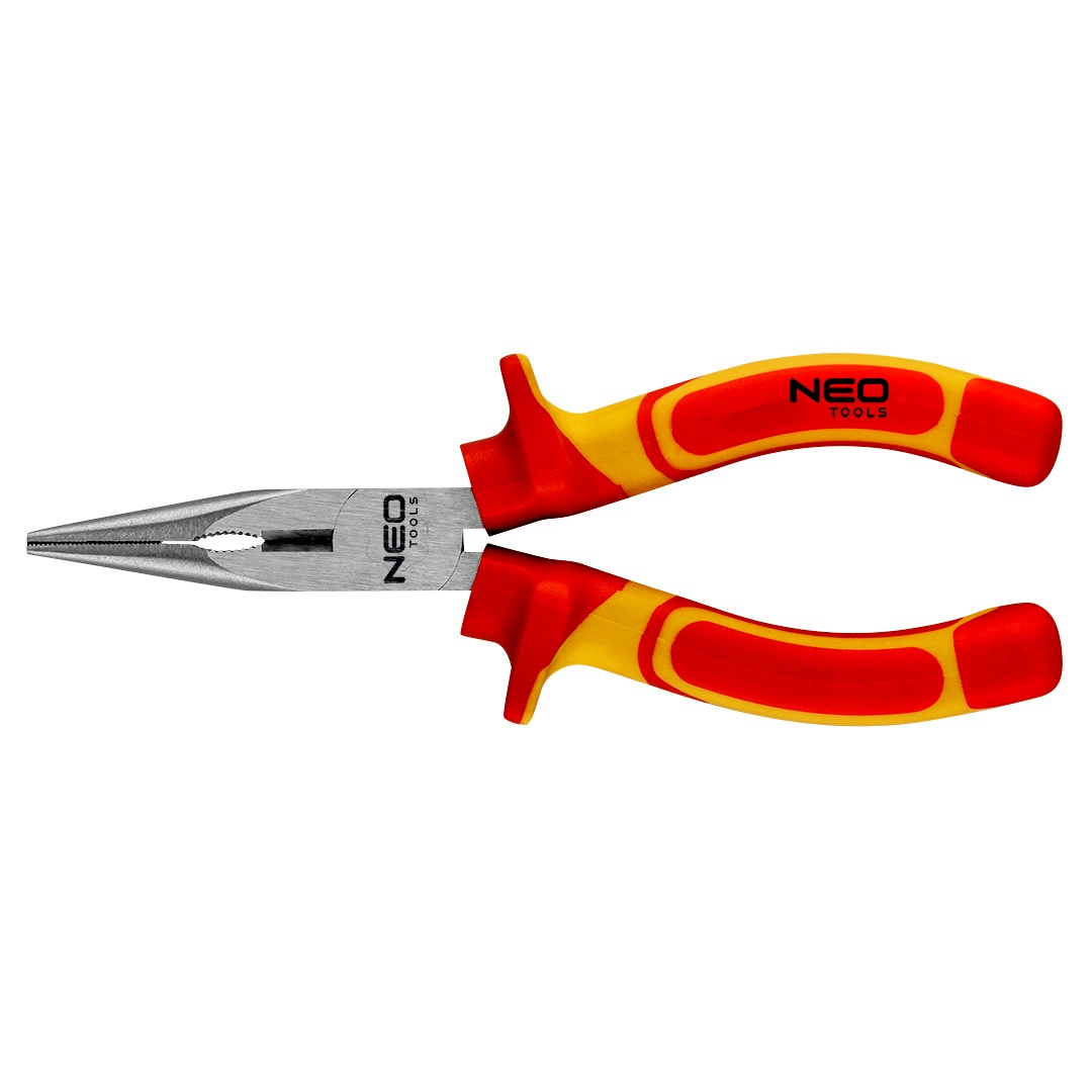 NEO hosszúcsőrű egyenes fogó, 1000 V. Max. 1000 V feszültség alatti használatra minősített. A kiváló minőségű, indukciósan edzett króm-vanádium acél pofák biztosítják az erős fogást és a hatékony vágást. Az ergonómikus bimateriál markolat növeli a használat komfortját. A termék megbízhatóságát bizonyítja a 25 éves jótállás.