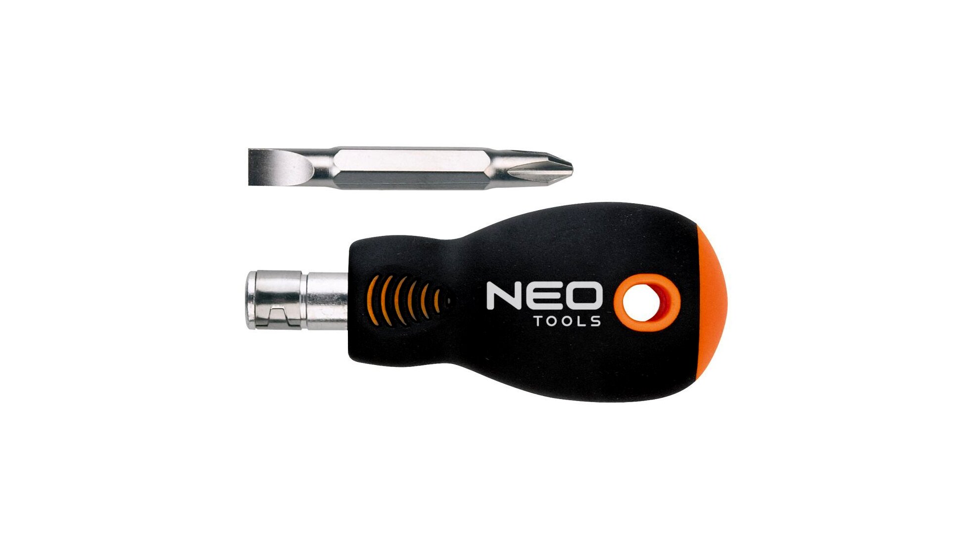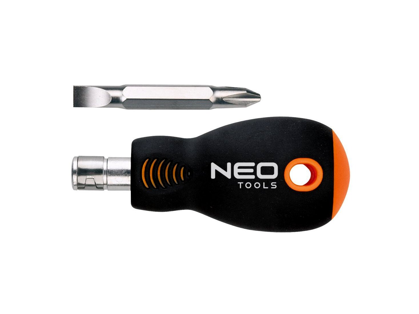 A NEO kétoldalas csavarhúzó markolatból és kétvégű (lapos + kereszt) szárból áll. A mágneses hegyek kivételesen ellenálló króm-vanádium acélból készülnek. A kézreálló bimateriál markolat ellenálló vegyszerek, kenőolajok és zsírok hatásának. A termék megbízhatóságát bizonyítja a 25 éves jótállás. A NEO márka a professzionális igényeket is kielégíti.