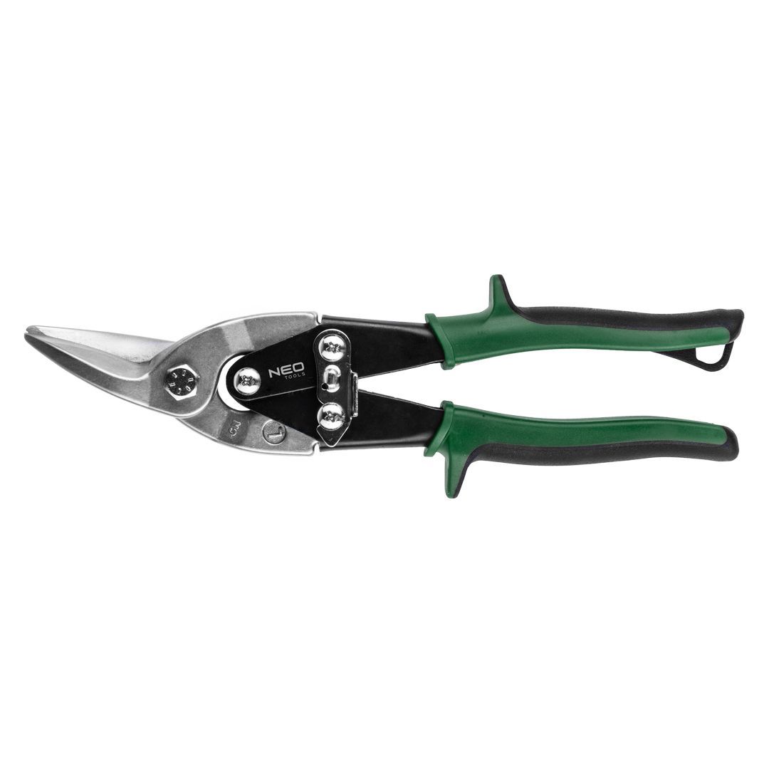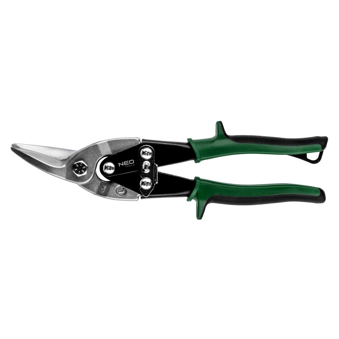 NEO lemezvágó olló. Szárai kiváló minőségű króm-molibdén acélból készülnek. Az élek indukciós edzést kapnak, ami jelentősen megnöveli tartósságukat. Vágóél kiképzése nem engedi kicsúszni a vágott anyagot. A gumifeltétes szemek stabilan fekszenek a kézben, nem csúsznak ki belőle. A szárak éles vágóperemei könnyedén, akadálymentesen vágják a lemezt. A TÜV Rheinland és a német DIN 6438 szabvány szerinti kivitel biztosítéka megbízhatóságának. A NEO márka a professzionális igényeket is kielégíti.