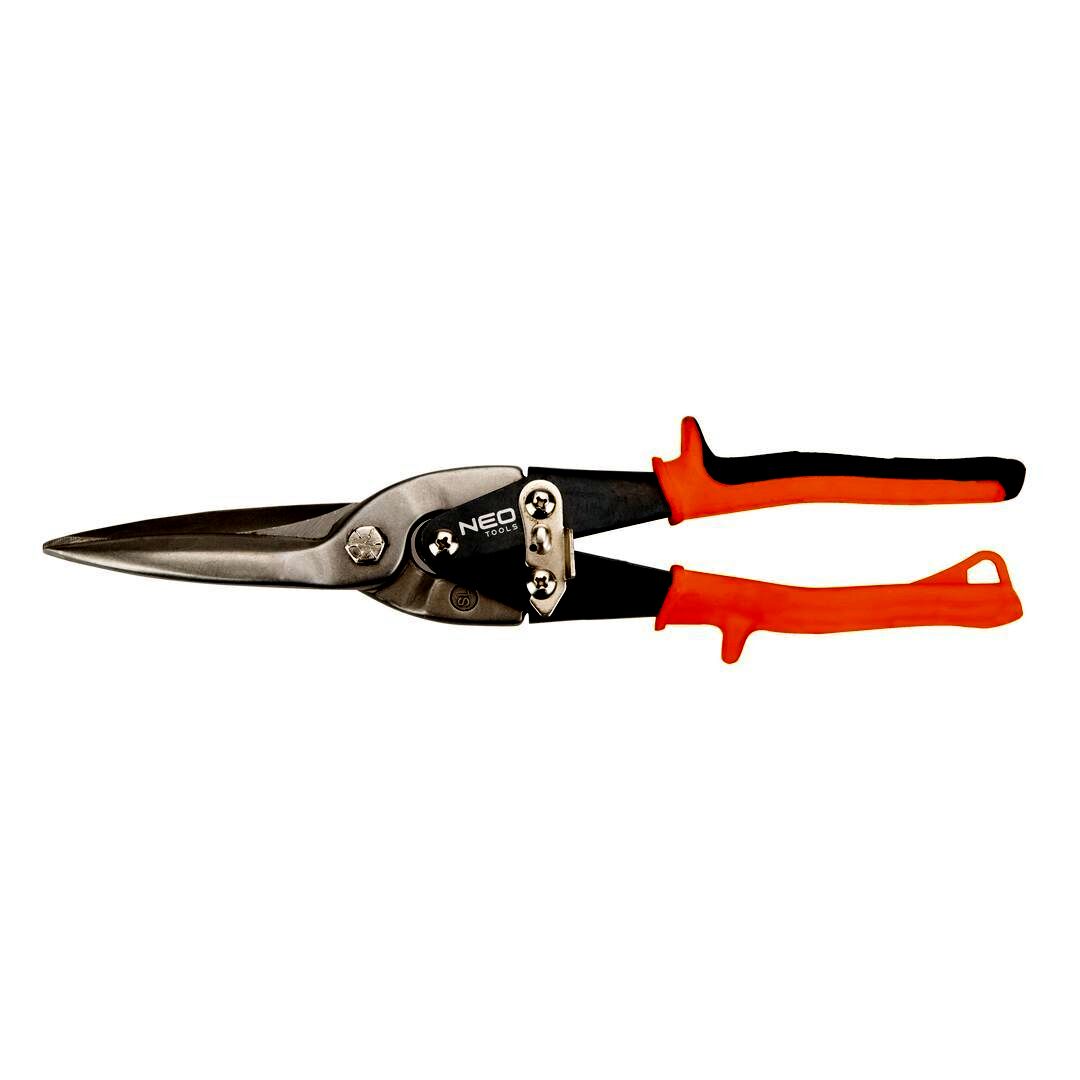 A NEO hosszúcsőrű lemezvágó olló max. 0,6 mm vastag acéllemezek, max. 0,3 mm vastag edzett acéllemezek, max. 1 mm vastag alumínium lemezek, max. 1,1 mm vastag rézlemezek és max. 5 mm vastag műanyag lemezek vágására szolgál. Szárai kiváló minőségű króm-molibdén acélból készülnek. Az élek indukciós edzést kapnak, ami jelentősen megnöveli tartósságukat. Vágóél kiképzése nem engedi kicsúszni a vágott anyagot. A gumifeltétes szemek stabilan fekszenek a kézben, nem csúsznak ki belőle. A termék kiváló minőségét és megbízhatóságát bizonyítja a TÜV Rheinland tanúsítvány. A NEO márka a professzionális igényeket is kielégíti.
