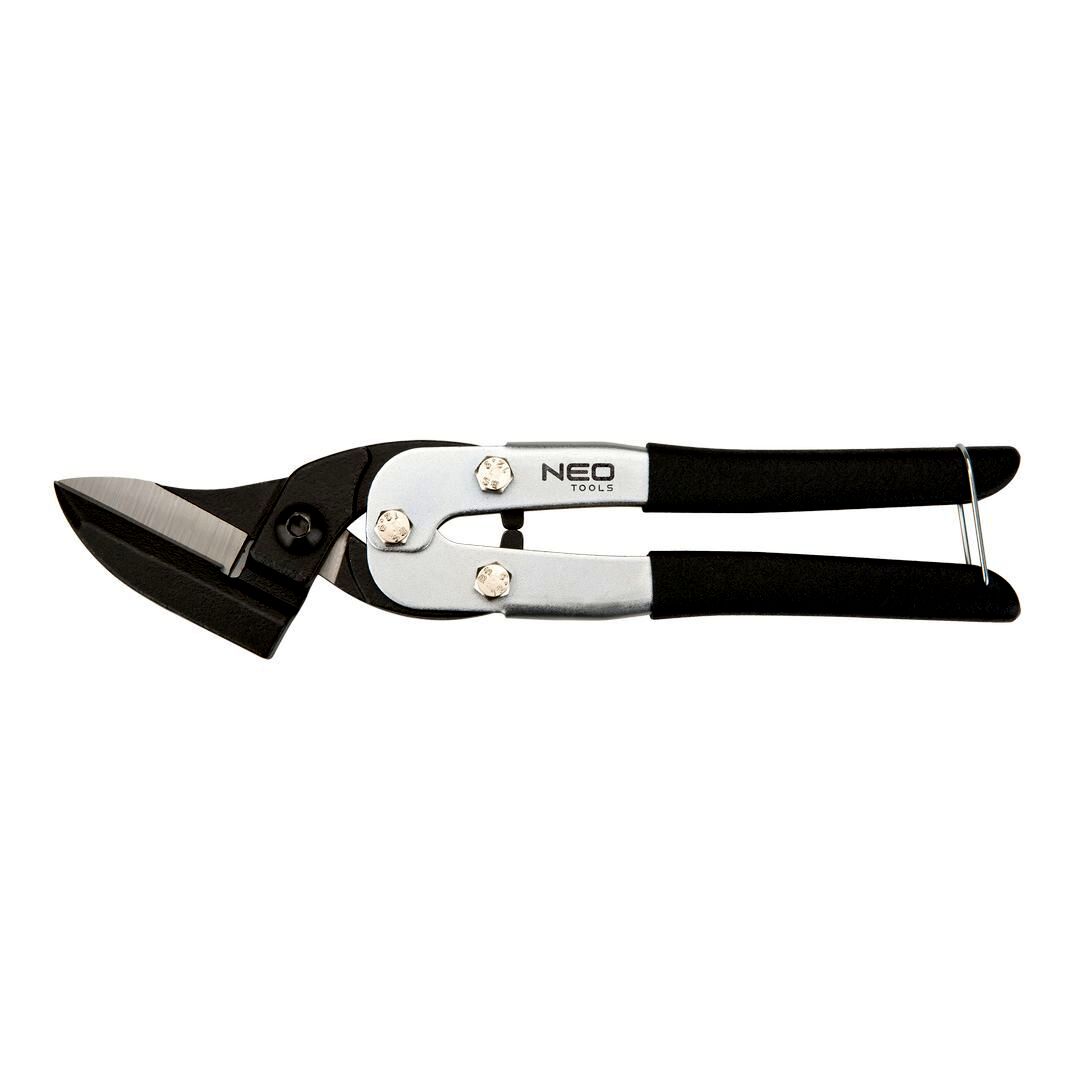 A NEO lemezvágó olló max. 0,9 mm vastag acéllemezek, max. 0,7 mm vastag edzett acéllemezek, max. 1 mm vastag alumínium lemezek, max. 1,1 mm vastag rézlemezek és max. 5 mm vastag műanyag lemezek vágására szolgál. Szárai kiváló minőségű króm-molibdén acélból készülnek. Az élek indukciós edzést kapnak, ami jelentősen megnöveli tartósságukat. Vágóél kiképzése nem engedi kicsúszni a vágott anyagot. A gumifeltétes szemek stabilan fekszenek a kézben, nem csúsznak ki belőle. A termék kiváló minőségét és megbízhatóságát bizonyítja a TÜV Rheinland tanúsítvány. A NEO márka a professzionális igényeket is kielégíti.