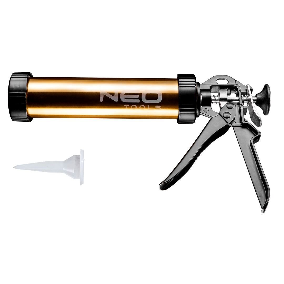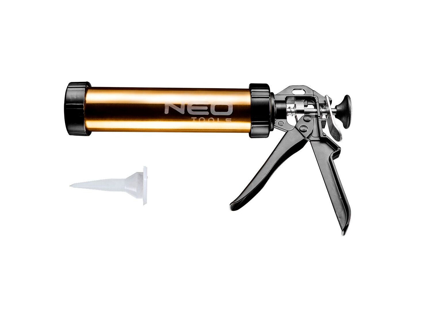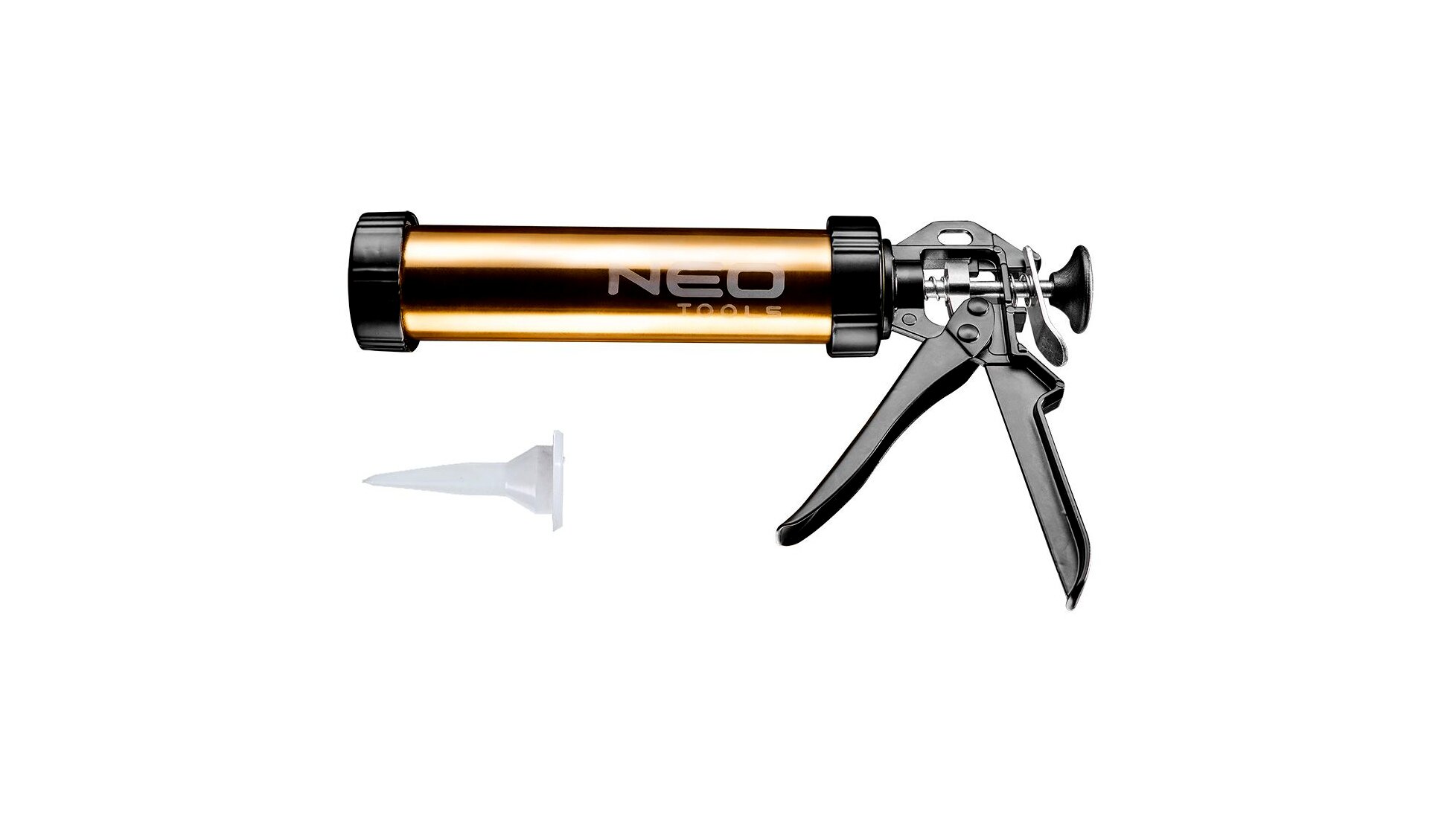 NEO kinyomó pisztoly 310 ml‑es tömítőanyag kartushoz Elforgatható acél kartustartó csővel, amivel elérhetők a nehezen hozzáférhető helyek is, egyben védi is a szilikon kartust. Az acél-alumínium test 1,1 mm vastag lemezből biztosítja a szerszám strapabírását és hosszú élettartamát. A NEO márka a professzionális igényeket is kielégíti.