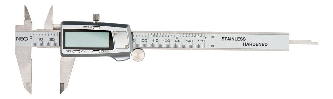 A NEO digitális féknyereg (ref. 75-011) 150 mm-es méréstartománnyal és 0,02 mm-es mérési pontossággal az egyik alapvető mérőműszer. Kiváló minőségű rozsdamentes acélból.