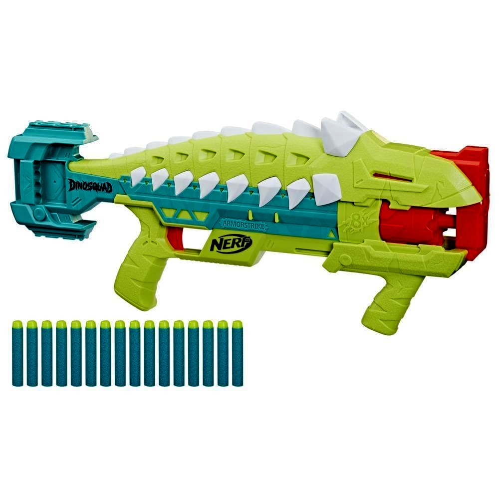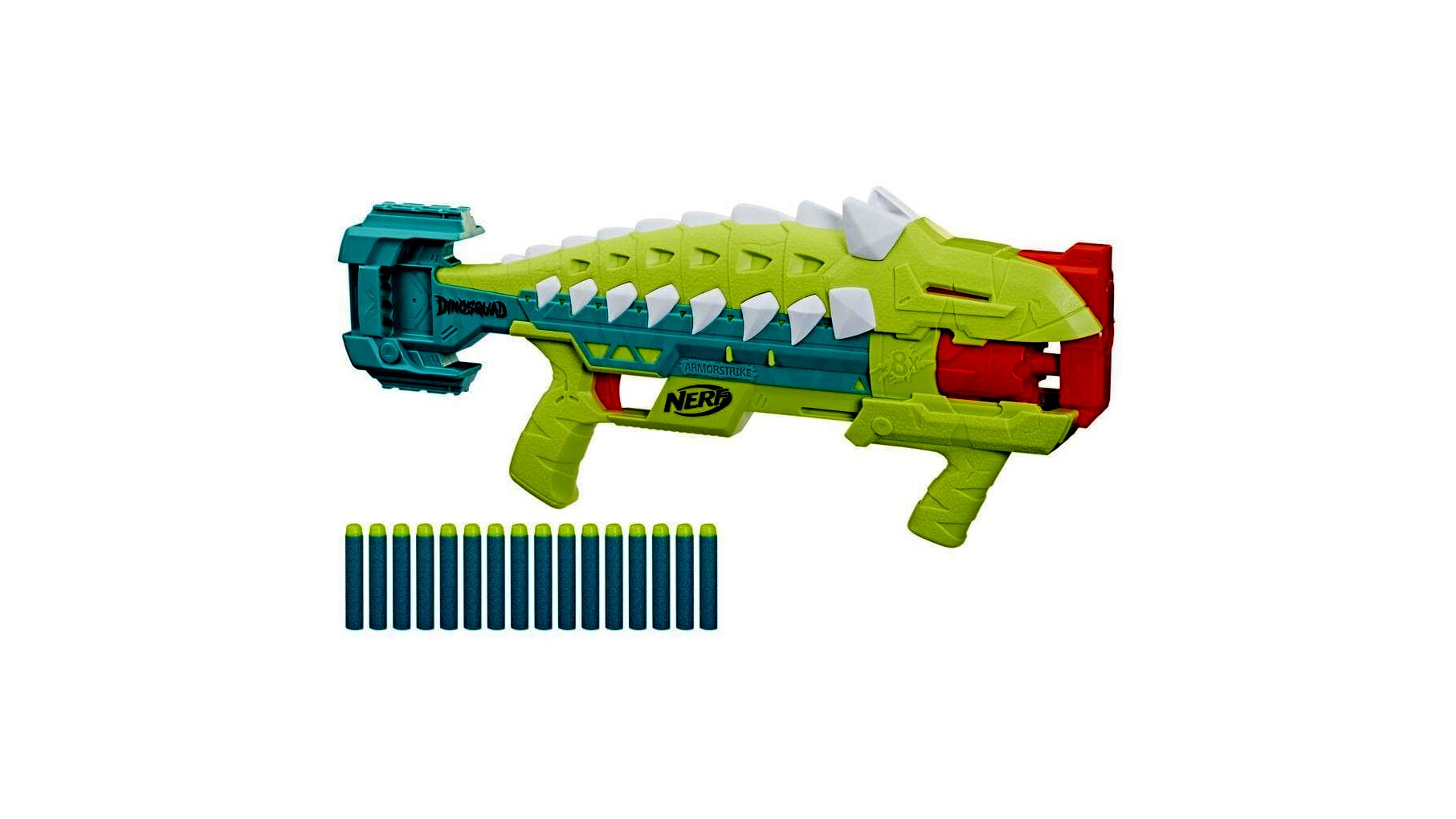 - NERF DINOSQUAD ARMORSTRIKE SZIVACSLÖVŐ FEGYVER: Lépj akcióba és kalandba ezzel a fegyverrel, amely látványos dinoszaurusz részletekkel idézi meg az Ankylosaurus megjelenését.